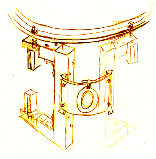 Idea on jokseenkin tällainen - viritysruuveihin kiinnittyvä, mutta nopeat kalvonvaihdot mahdollistava. Itse kelluminen soseutetaan virityspesän ja pidikkeen väliin laitettavalla pehmikkeellä. Tämä pehmike on koko jutun ydin. Vanha kiinnityspalikka on tärkeä osa kokonaisuutta. Sen kaarevuudella, ja riittävän pitkillä ruuveilla (liikkumisvara) toteutetaan sopiva kaarevuus. Tähänkin väliin mielellään pehmustetta. Kulmaraudoilla toteutettu liitos poistaa hitsaamistarpeen. |