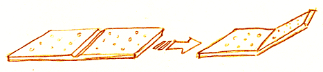 Riittävä kaarevuus toteutetaan tässä ratkaisussa taittamalla levyä. Ensin tehdään ura, jota pitkin taitos onnistuu helposti. Puolen metrin jakovainaalla levy taittuu kuin juusto. |
