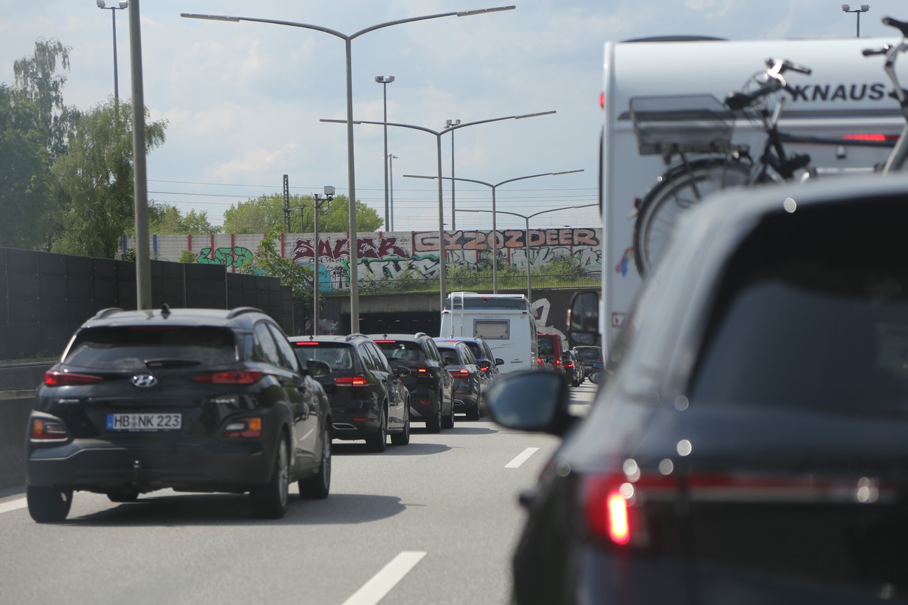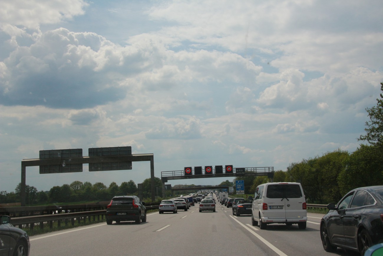 Tilannetta ei ainakaan helpottanut tien absoluuttinen tylsyys; Pohjois-Saksan A1-moottoritie on kuin viivottimella vedetty. Lisäksi se on kuuluisa loputtomista tietöistä ja niiden aiheuttamista ruuhkista - kuuluu sarjaan vältä jos voit. Kuin ihmeen kaupalla suurin osa kaivannoista on nyt saatu umpeen ja liikenne soljumaan; vain kolme stau:ta eli ruuhkan täydellistä pysähtymistä ennen Hampuria - sehän on tosi hyvin. Juu.