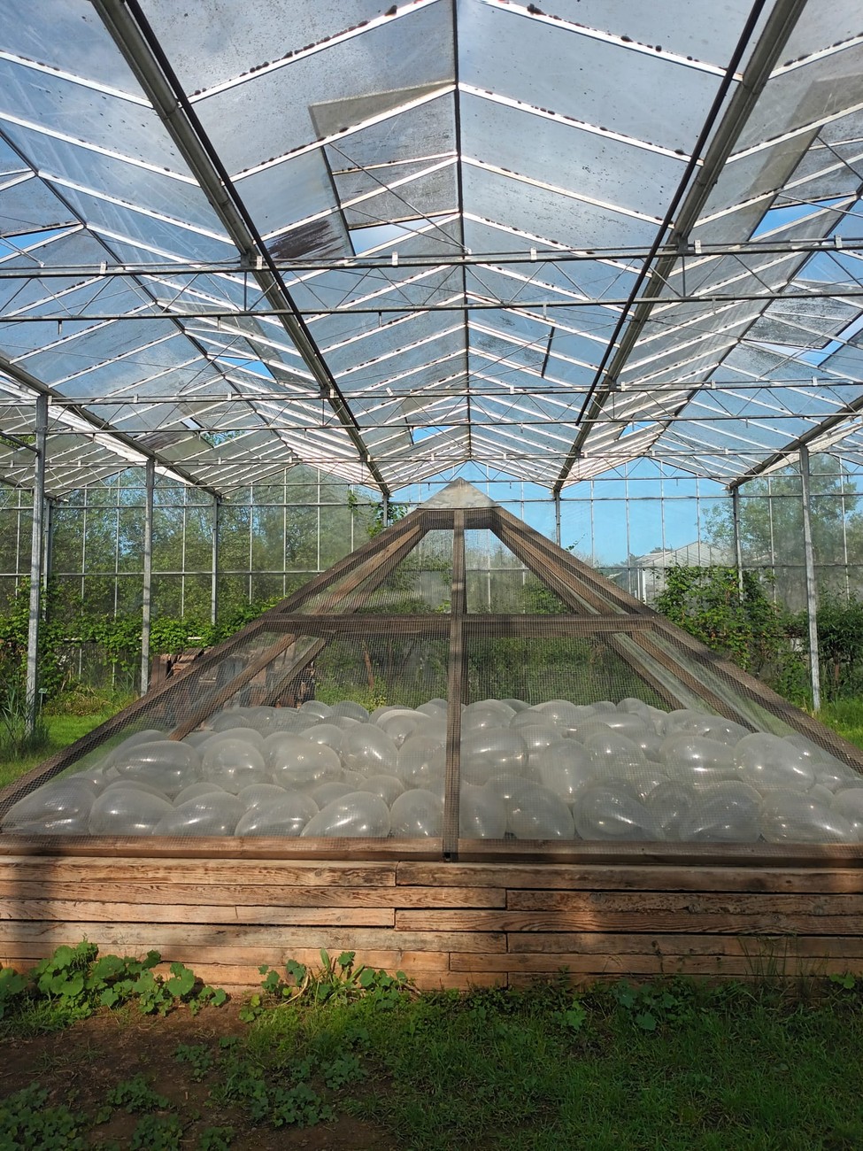 Lasisia, ilmapallon muotoisia asioita verkkopyramidissa
