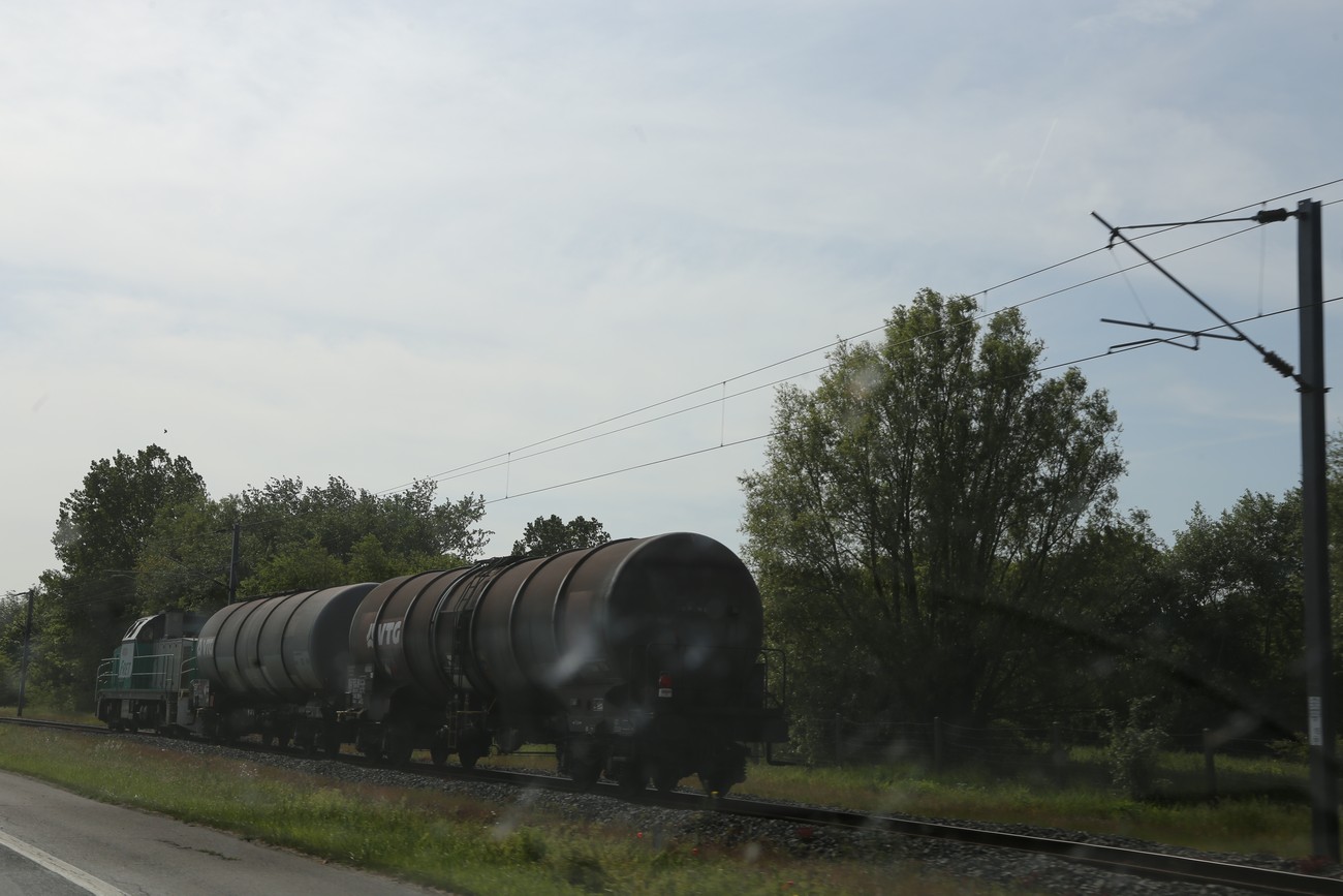 Huomattava juna; dieselvetoinen, sähköradalla