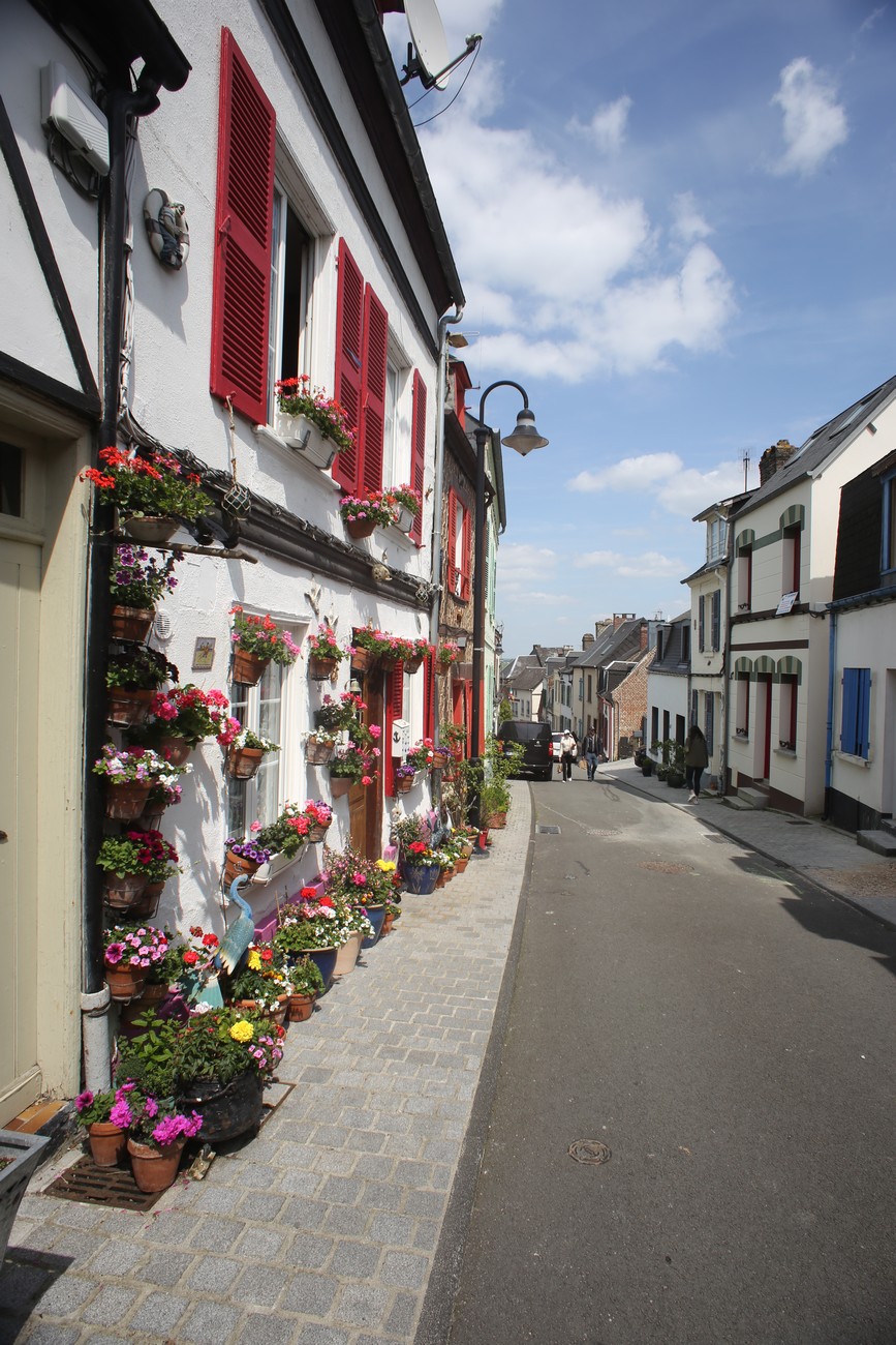 St-Valerie-sur-Somme on vanha, osittain keskiaikainen kalastajakylä, jonka turistit ovat jostain syystä vallanneet täysin. On siellä toki mutainen joki, Somme, tuoretta kalaa, pieniä sieviä taloja ja kapeita kujia, mutta niin on monessa muussakin paikassa. Ja silti myös me olimme nyt siellä. Odotuksille tuli kyllä katettakin, näkymät hivelivät verkkokalvoja ja tunnelmaakin oli, joskin ehkä hieman vääränlaista - porukkaa ja tungosta oli enemmän kuin Gamla Stanin pääkadulla heinäkuussa, ja tämä on kuitenkin pienempi paikka.