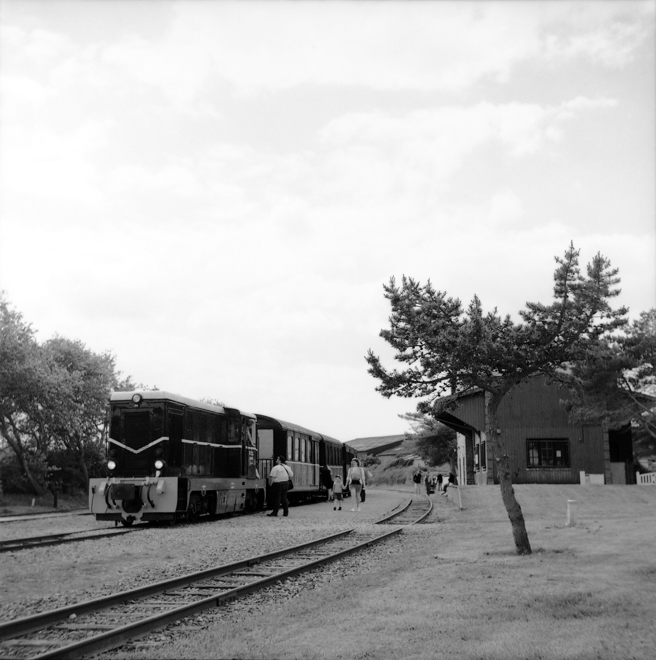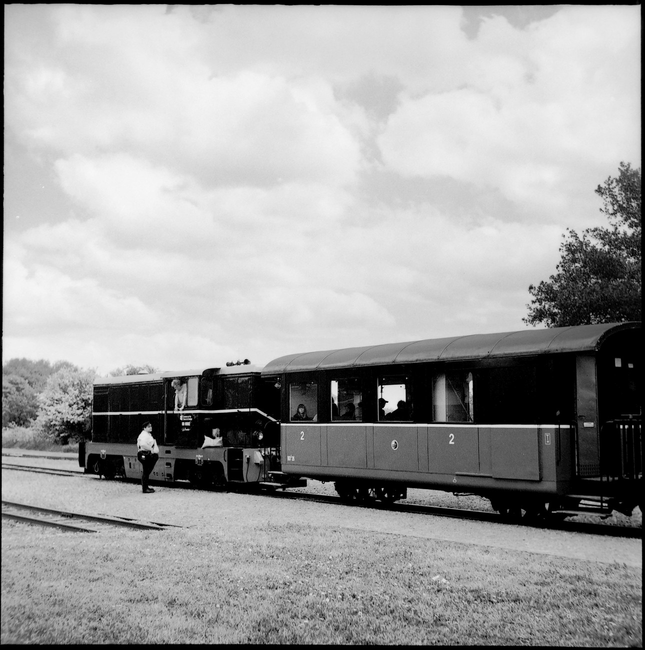 Sammalhattuinen junaukkeli (Jorma Kääriäinen vanhana) nauttii työstään niin että kääntää vaihdetta silmät ummessa