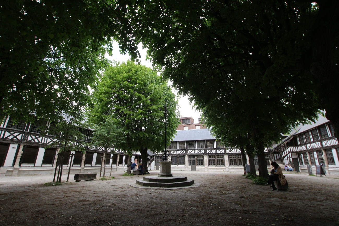 Sisäpihaa ympäröivät pitkät käytävät