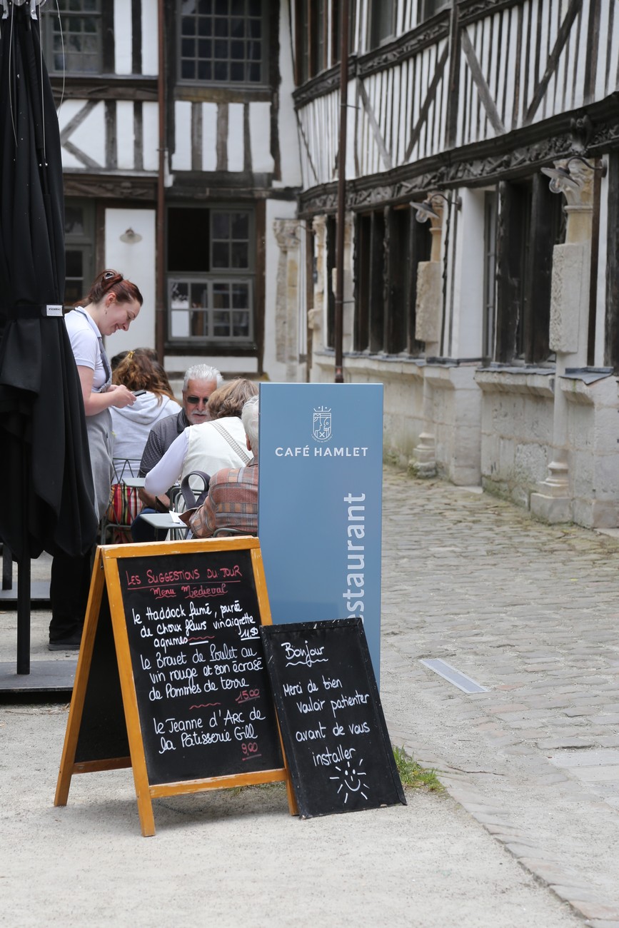 Ravintola kaikkien kallojen keskellä - nimi on tietenkin Hamlet. Le Jean d'Arc on muuten leivonnainen, ei kovin tunnettu ehkä.