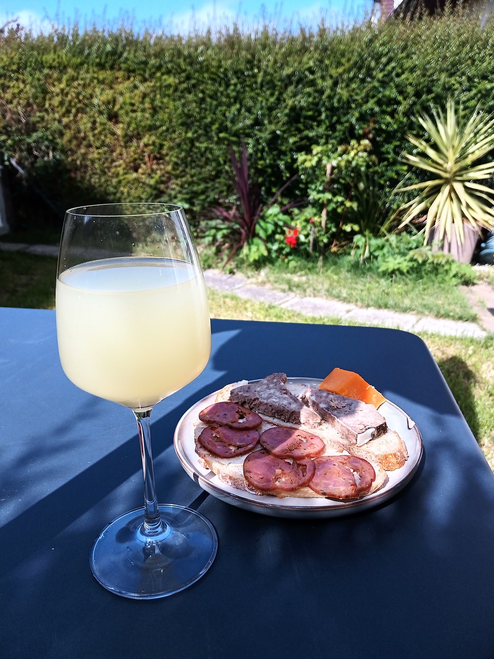 Kämpille syömään ja kirjoittamaan, mitätön mikroateria ja oikein hyvää sitruunatiramisua, juuri sopivan kirpeää. Huomasin kaksi etanaa pihan palmunkaltaisessa kasviksessa, toinen näytti ihan Bismarkilta eli viime vuoden vahinkolemmikiltä. Jätin ne ainakin toistaiseksi luonnon helmoihin.