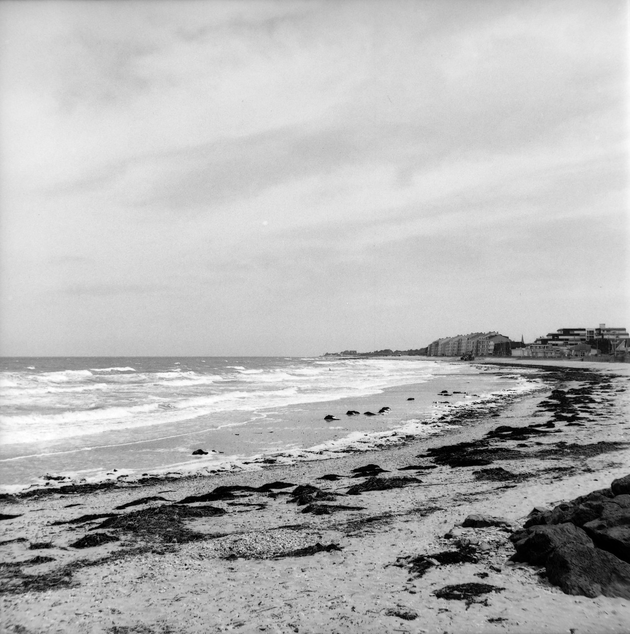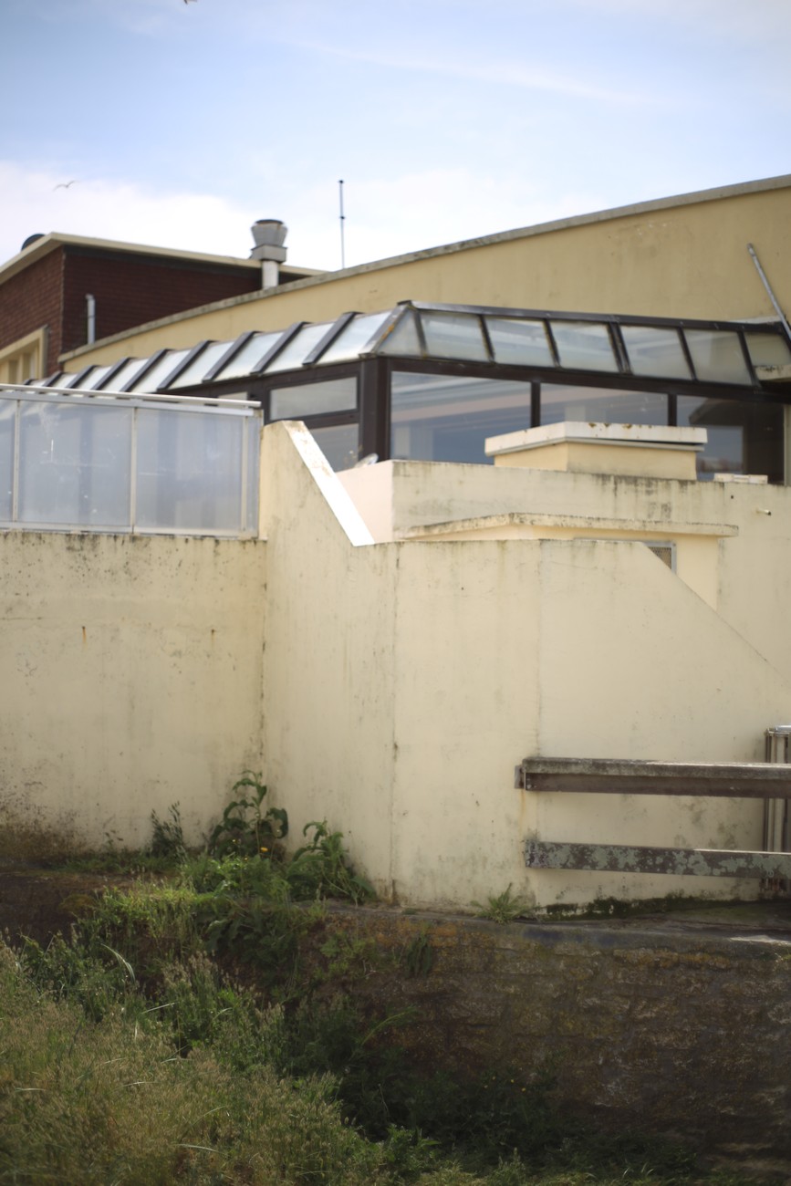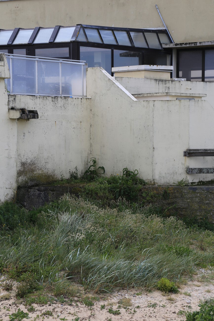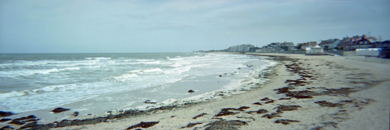 Kämpillä pakkasin vaimon autoon, ajoimme katsomaan bunkkereita sun muita betoneja Longues-sur-Meriin ja Gold Beachille. Jaksoin odottaa vuoroani ja sopivien kuvakulmien vapautumista tempoilevien ja jumittavien aikuisten kanssa ihan hyvinkin, mutta kun paikalle kaarsi kaksi bussillista teinejä, tiesin että aika oli täysi. Bunkkerit olivat kuitenkin hienoja, graafisen kaarevia ja sopivan kulmikkaita mustavalkokuviin. Toivottavasti valotus osui, sen näkee sitten kotona.