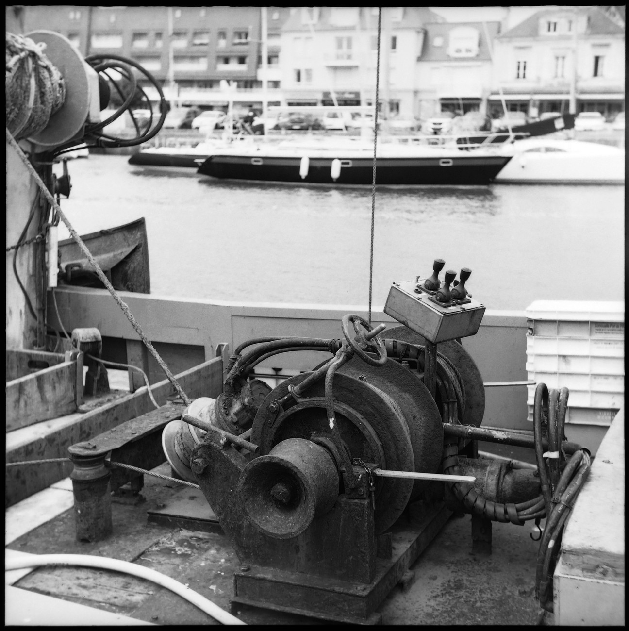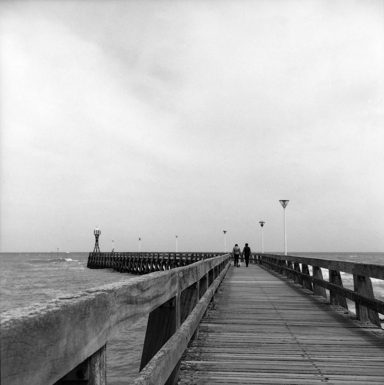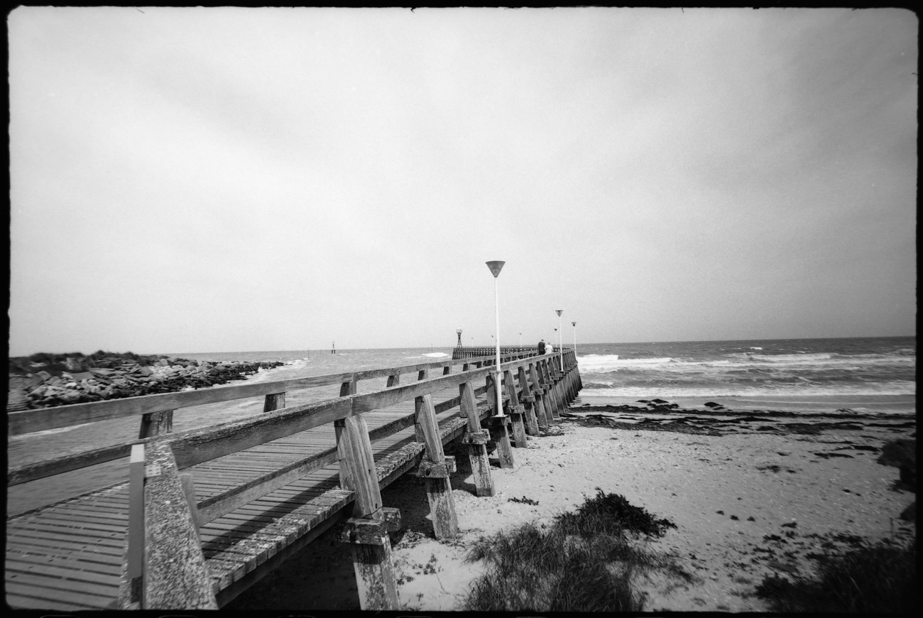 Kämpillä pakkasin vaimon autoon, ajoimme katsomaan bunkkereita sun muita betoneja Longues-sur-Meriin ja Gold Beachille. Jaksoin odottaa vuoroani ja sopivien kuvakulmien vapautumista tempoilevien ja jumittavien aikuisten kanssa ihan hyvinkin, mutta kun paikalle kaarsi kaksi bussillista teinejä, tiesin että aika oli täysi. Bunkkerit olivat kuitenkin hienoja, graafisen kaarevia ja sopivan kulmikkaita mustavalkokuviin. Toivottavasti valotus osui, sen näkee sitten kotona.