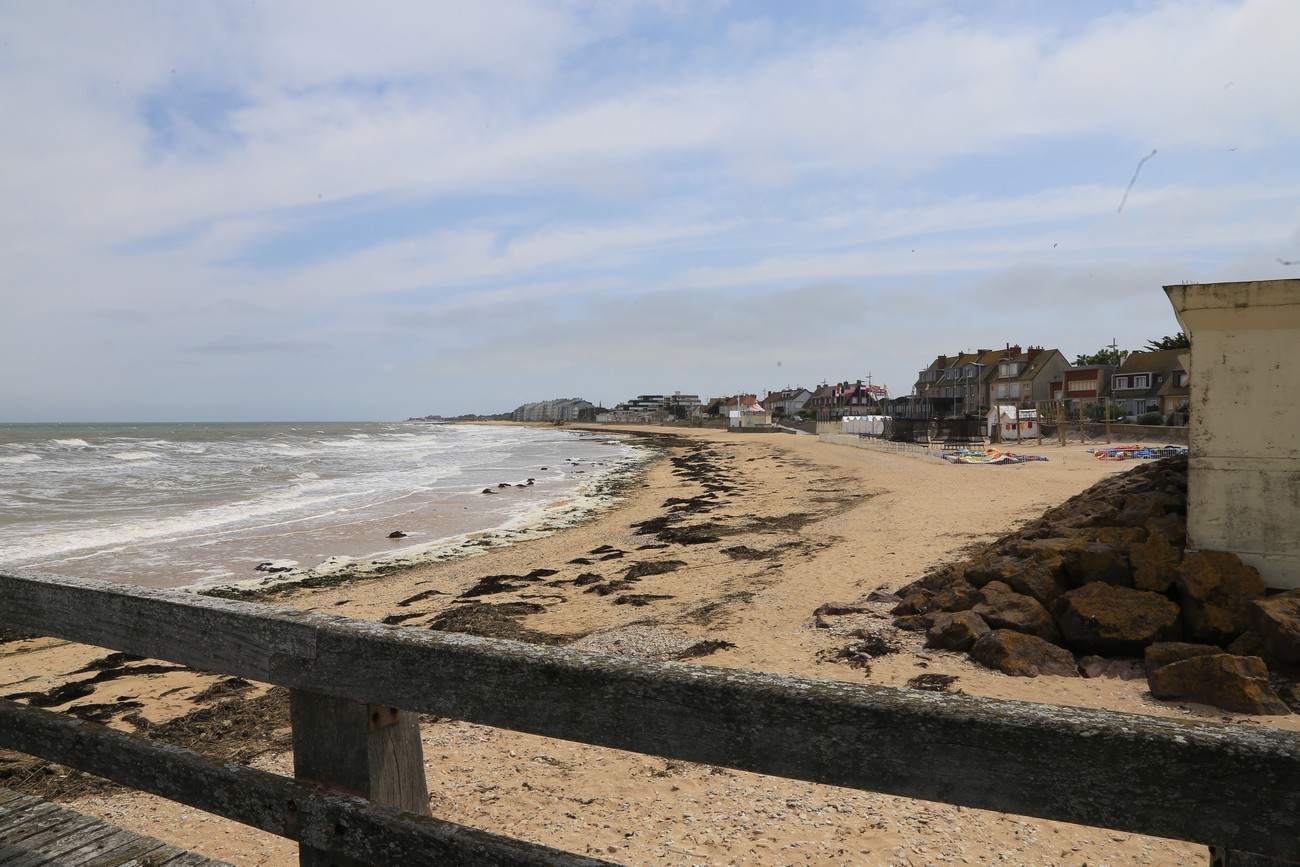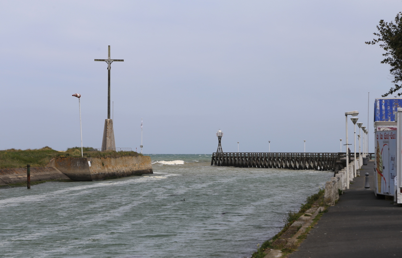 Seuraavana Arromanches-les-Bains ja nopeasti pysytyynpolkaistu väliaikainen satama, Port Mulberry. Ponttoonilaitureiden ja aallonmurtajien ruostuneita rankoja lojuu rannalla ja meressä siellä täällä, laajan puolikaaren muodossa - näky on jotenkin apokalyptinen, kuin katselisi jonkin muinaisen sivilisaation viimeisten hetkien jäänteitä. Katselimme näkyä kahdeltakin eri luiskalta, joilta olisi voinut ajaa suoraan rannalle. Vesi oli kuitenkin sen verran ylhäällä, ettei uskaltanut - kiinni jos jäisi, niin siellähän olisi - ja paikalliset nauraisivat, ainakin paikalliset lokit.