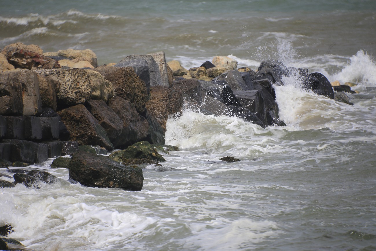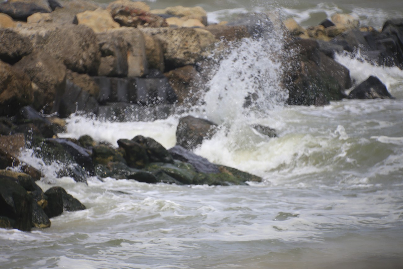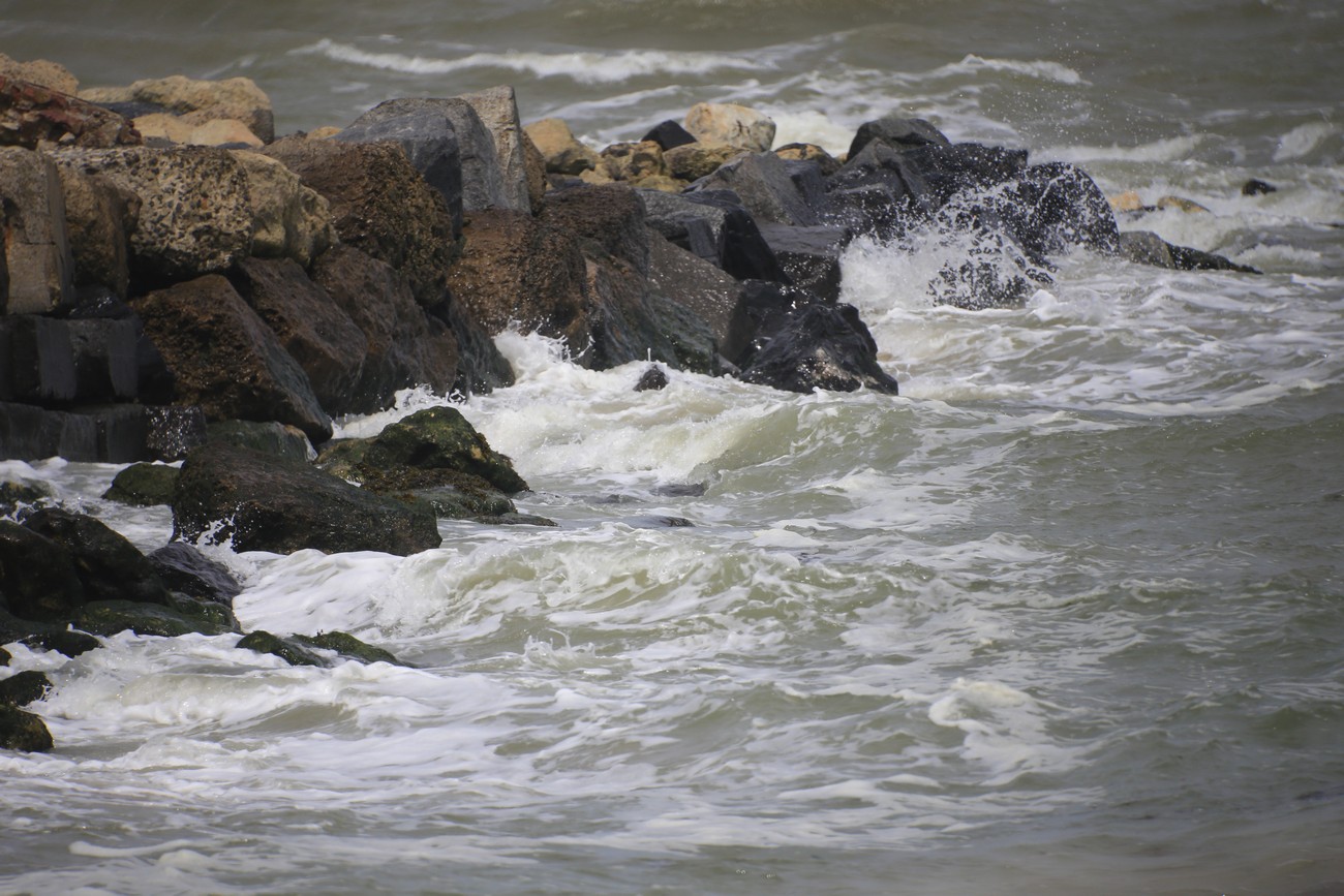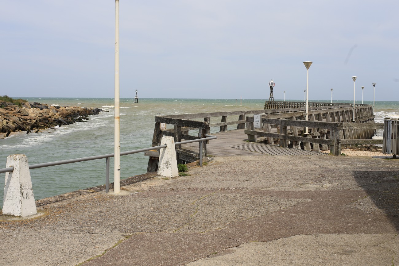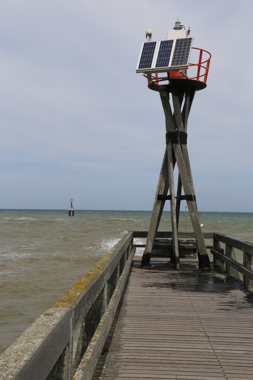 Ajoin vielä sataman toiselle puolelle, katsomaan vuorovettä pitkän laiturin kärjestä. Meri oli tosiaan paljon alempana kuin aamulla, mutta joen virtaus kulki väärään suuntaan. Laiturin pään jäkeen rakennelma jatkui aallonmurtajana pitkälle mereen, loistot vilkuttivat punaista ja vihreä, taivas hehkui punaista ja keltaista. Sitten sammuivat katuvalot, ihan muutamaa lukuunottamatta. Aika mennä kotiin.