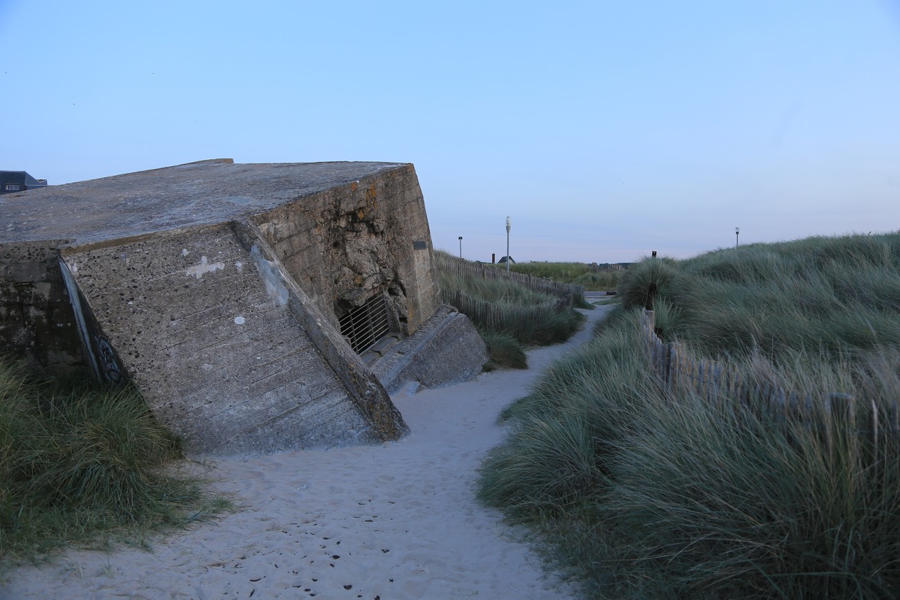 Kas, bunkkeri vinossa ja hyökkäilevät soltut. Mutta onko se muurattu harkoista? Epätavallista.