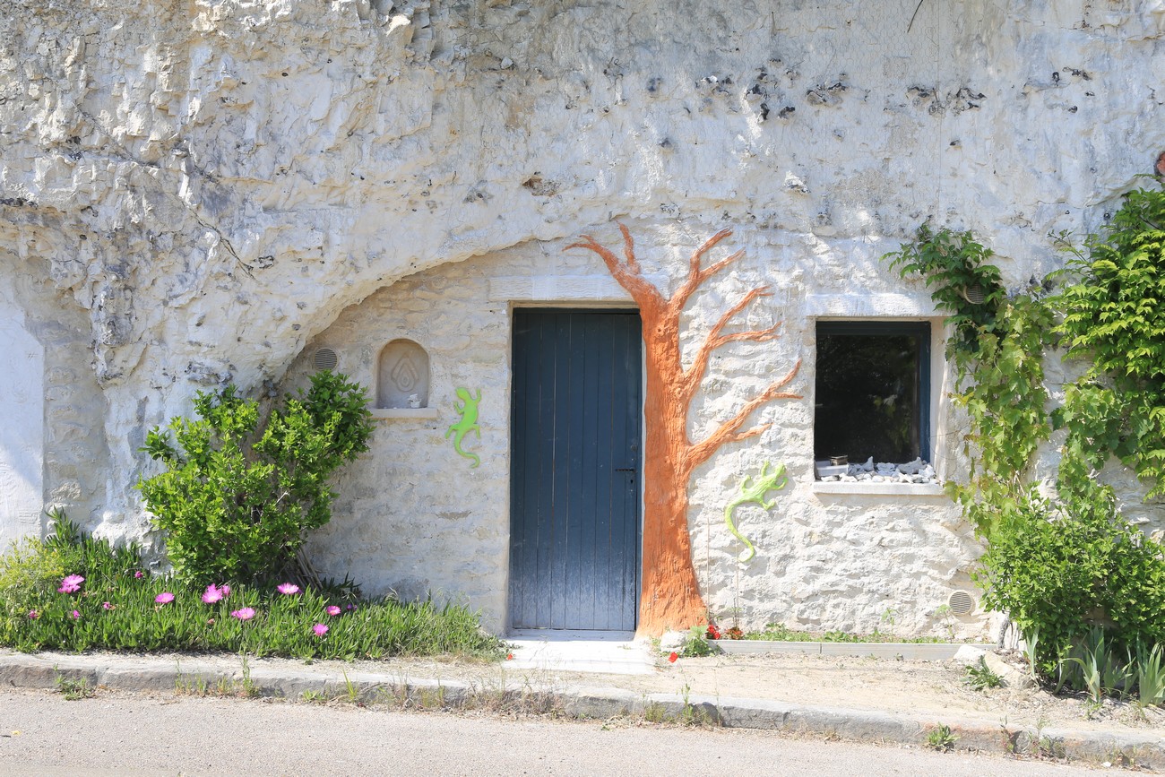 Linnoitus katsoo ylhäältä ja luolissa on ulko-ovet