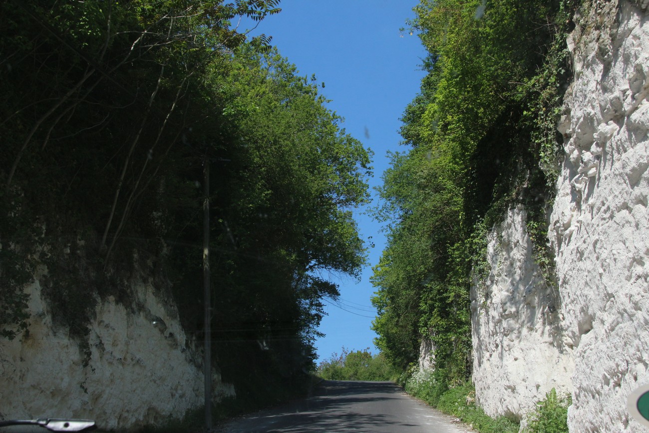 Mielikuvituksellisesti nimetyn Chatêau de la Roche-Guyon:in vanhempi ja uudempi puoli, joita tunneli yhdistää