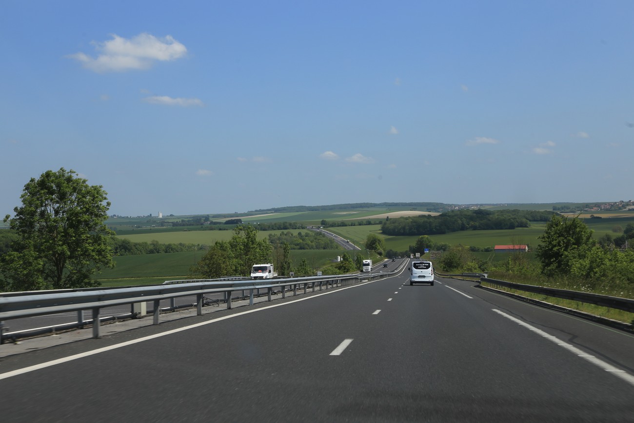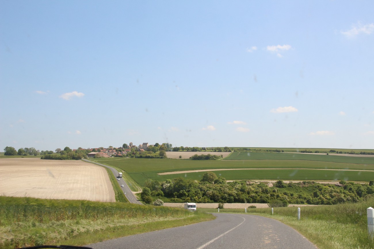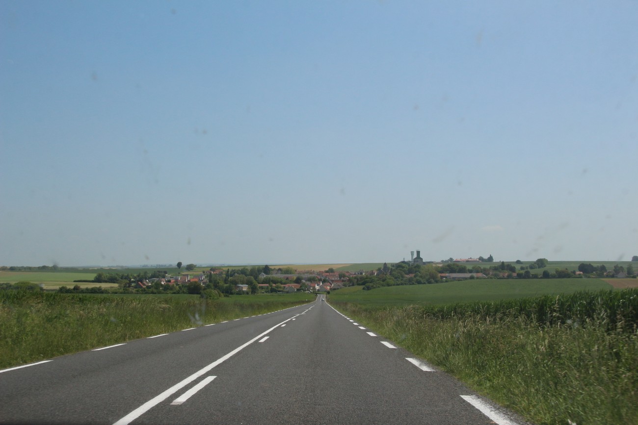 Pian oltiin taas maaseudulla - Pariisi nimitäin loppuu kuin seinään. Ylä- ja alamäkiä riitti, samoin laajoja näkymiä ylängöltä viereisiin pikkukaupunkeihin. Moottoritieltä poistuttaessa meitä tervehti kyltti, joka totesi, että huomaatehan että ette ole enää moottoritiellä, ajakaa siis hiljempaa. Erikoista, mutta pitää muistaa että noin joka toisessa nopeusrajoituksessa on lisäkyltti "rappel" eli "muistutus" - ja että aika monien kärkikolmioiden alla lukee joko "väistäkää", "antakaa tietä" tai "teillä ei ole etuajo-oikeutta." Seuraavaksi tulee varmaan stop-merkkiin lisäkilpi "pysähtykää."