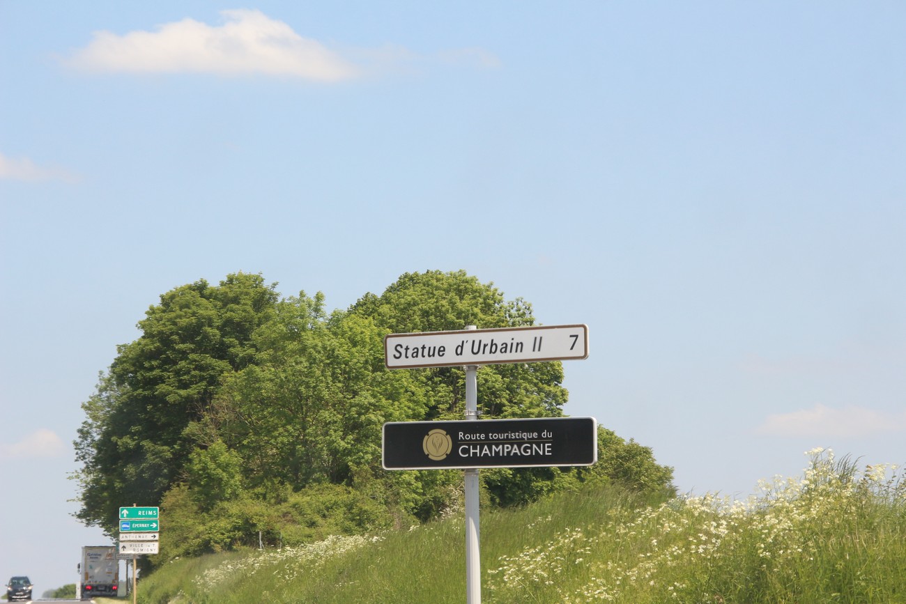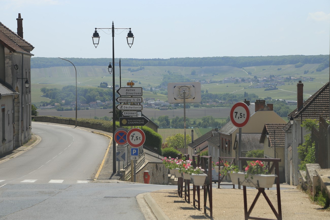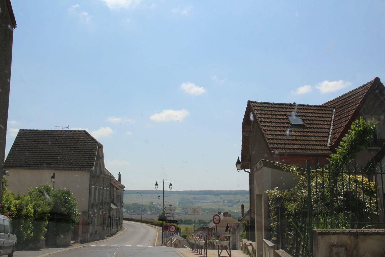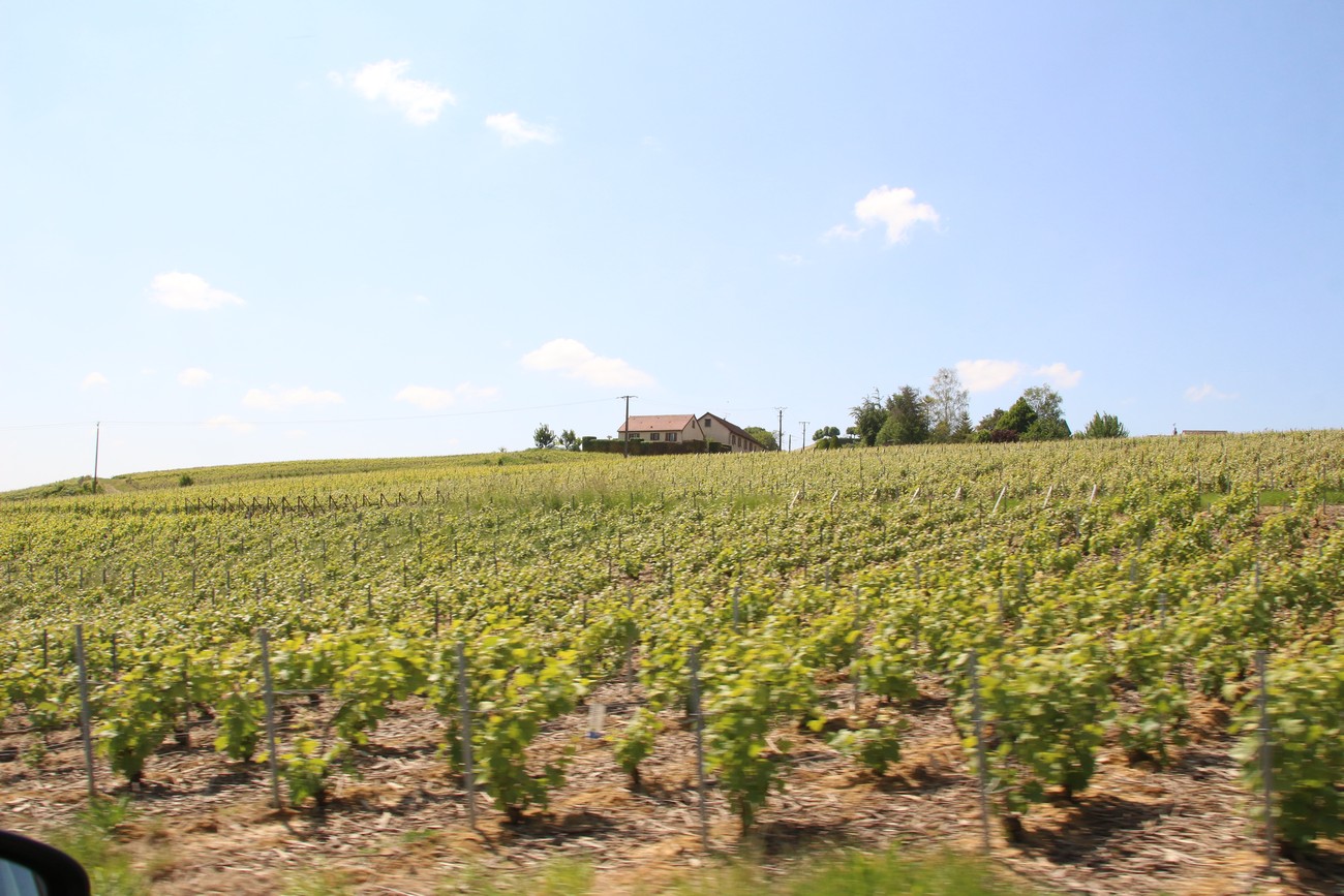 Pieni tie jatkui samanlaisena kuin ennenkin, heinä tuoksui, puut kukkivat ja pelot vaihtuivat välillä metsiksi. Olin juuri toteamassa, tai ehkä se oli Krista, että ei tämä kovin shamppanjaiselta näytä, kun tulimme puiden katveesta Marne-joen laakson yläreunaan. Joki kiemurteli kaukana alhaalla ja hiekanväriset kylät täplittivät kumpuilevaa maastoa, jonka jokaikinen neliösentti kasvoi viiniköynnöstä. Niin se maisema muuttuu.