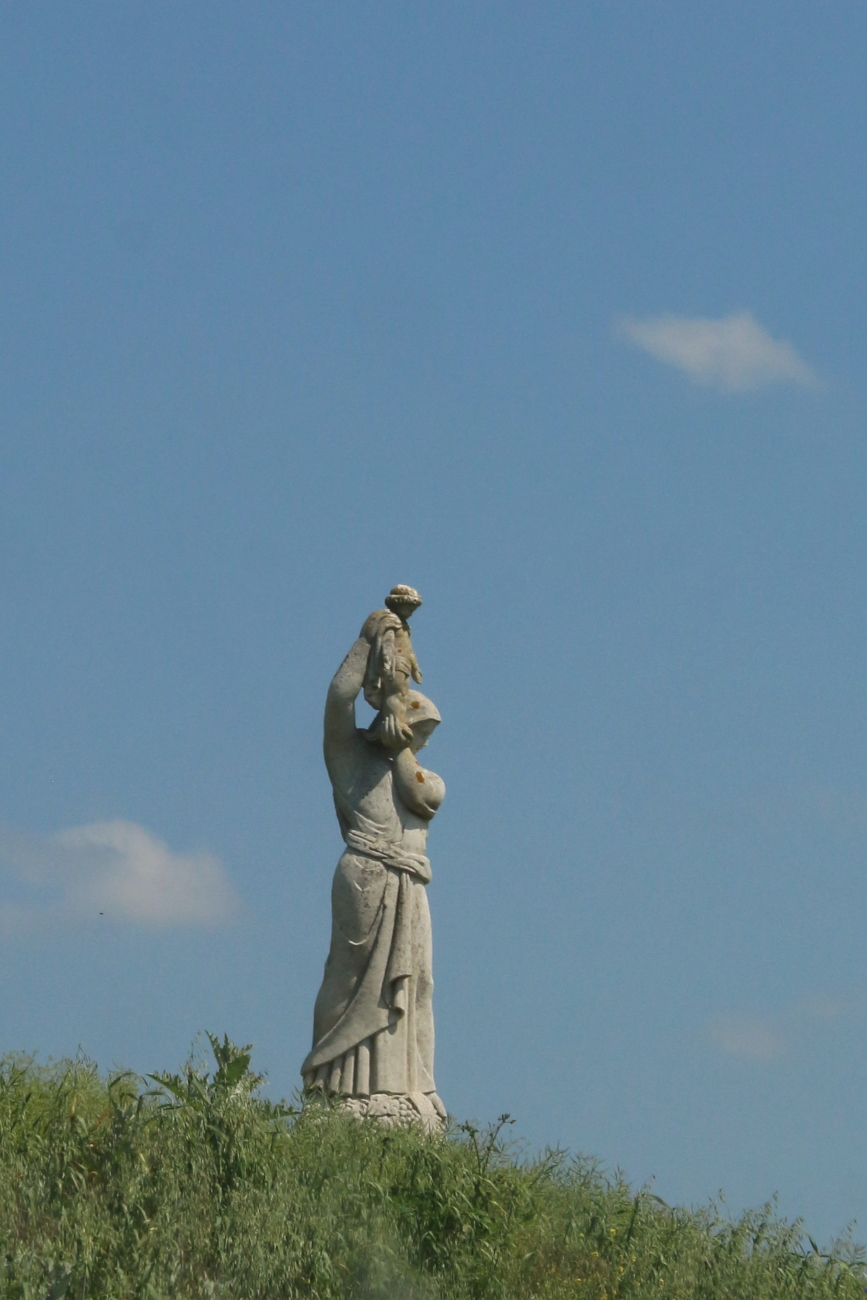 Että edes jotain näkisimme, ajoimme kohti Ossuary du Douaumontia eli luutaloa - ja siinä, alla puolen kilometrin päässä, oli tuhottu kylä. Opastaulut ja kaikki. Katujen paikalla kulkivat pienet polut, talon kohdalla oli kuoppa ja kiveen asennettu kyltti joka kertoi mitä missäkin oli ollut - leipomo, suutari, tinuri, maatalo, maatalo, maatalo, kirkko. Ei kiveä kiven päällä, vain alkuillan lämmin aurinko ja hiljainen tuuli. Aika pysäyttävä paikka - ja samanlaisia on lähistöllä ainakin kaksi muuta.