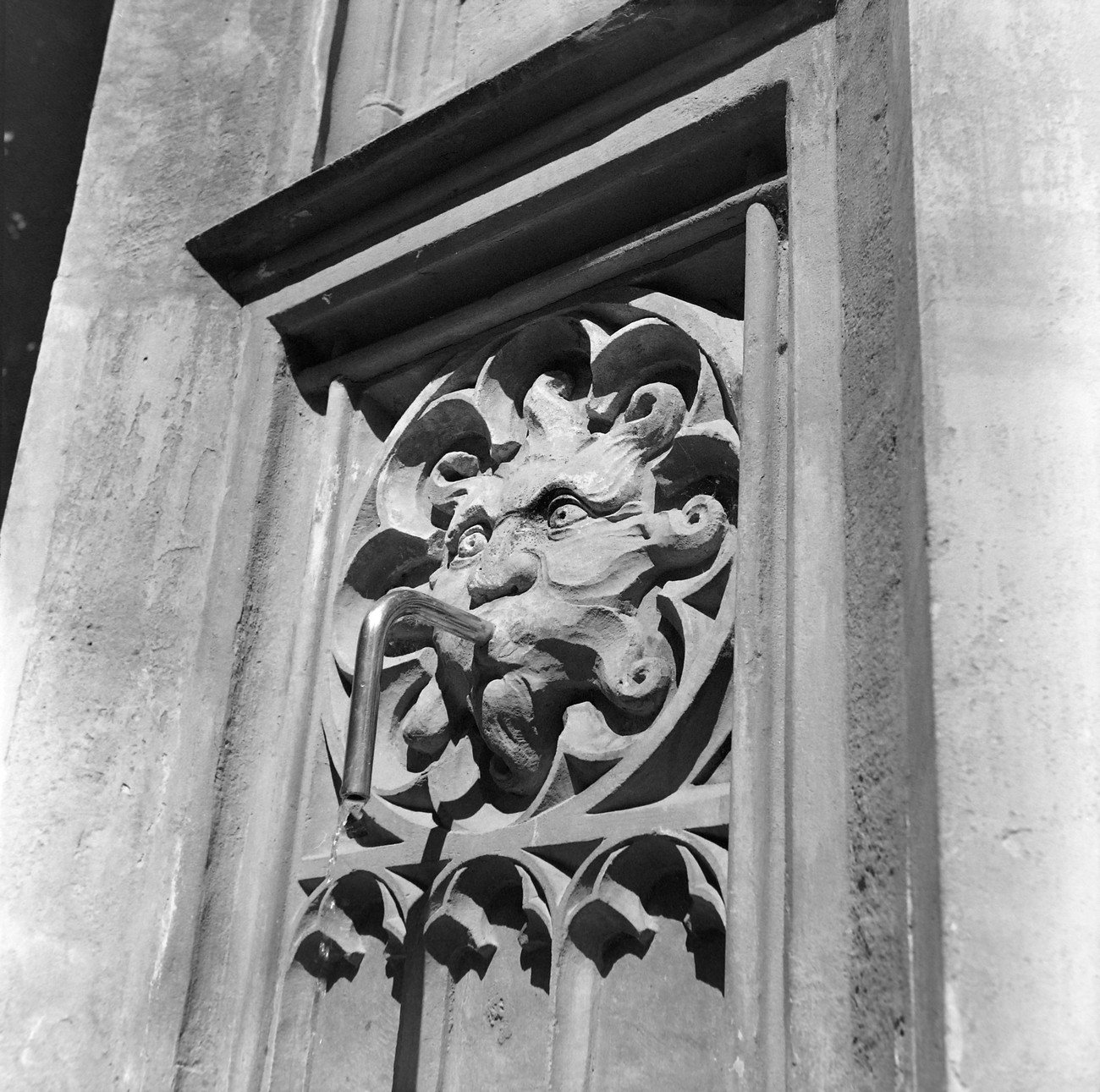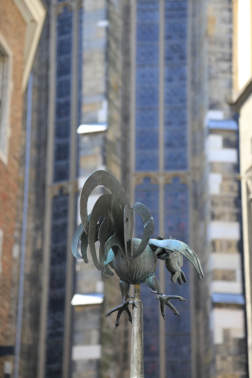 Kävelin torilta kirkolle, se oli oikein kaiserstuhl eli keisarien virkaanvihkimyspaikka. Matka ei ollut pitkä, mutta ehdin nähdä noitien lettubaarin, sätkynukkesuihkulähteen ja aika paljon puluja. Katedraali se vasta erikoinen olikin. Ensin kirkontorni, sitten noin puolikas kirkko, sitten kapea kuja - ja sitten katedraali, kahdella eri tornilla ja niitä yhdistävällä sillalla. Ihan kuin joku olisi päättänyt, että tähän se nyt tulee ja pudottanut koko komeuden nosturista että poks. Löytyi paljon jänniä kuvakulmia ja odotin jo sisälle pääsyä - mutta silloin alkoi senvaltakunnan kellonsoitto ja moikina, että pään sisälläkin kaikui ja humisi. Samalla käännyin kulman ympäri, haistoin suitsukkeen makean savun ja näin tuhatpäisen väkijoukon. Niin tosiaan, se superhelluntai. En taidakaan mennä.