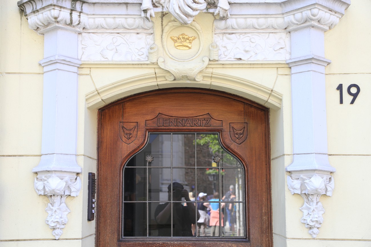Minimalistinen lasimaalaus - ja hei, onko tuo sittenkin alunperin sisäseinä?