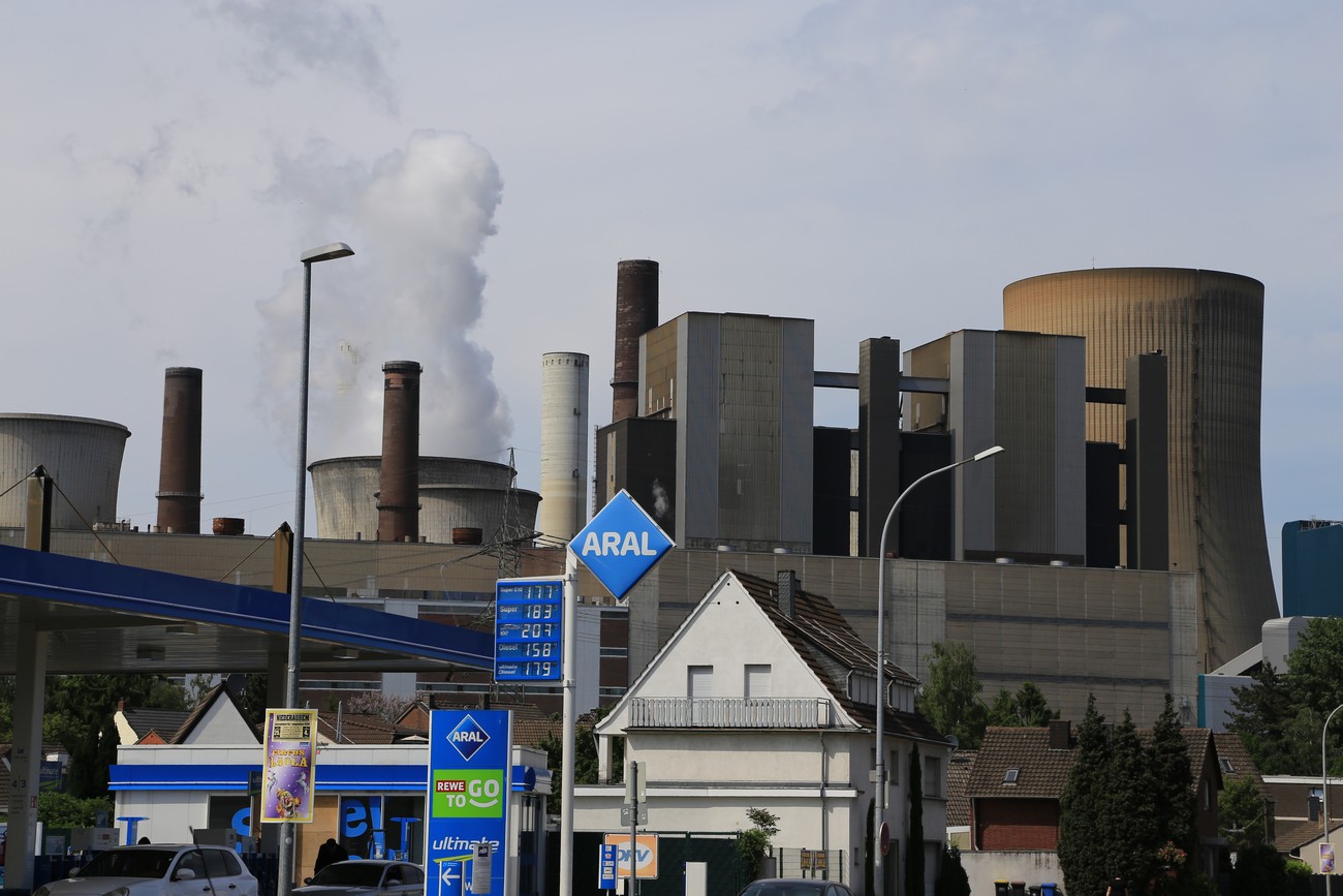 Horisontissa höyryää voimala, kuljettimet vievät hiilen suoraan sinne