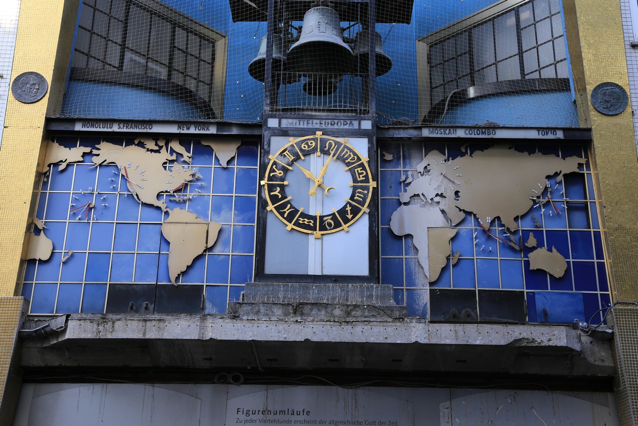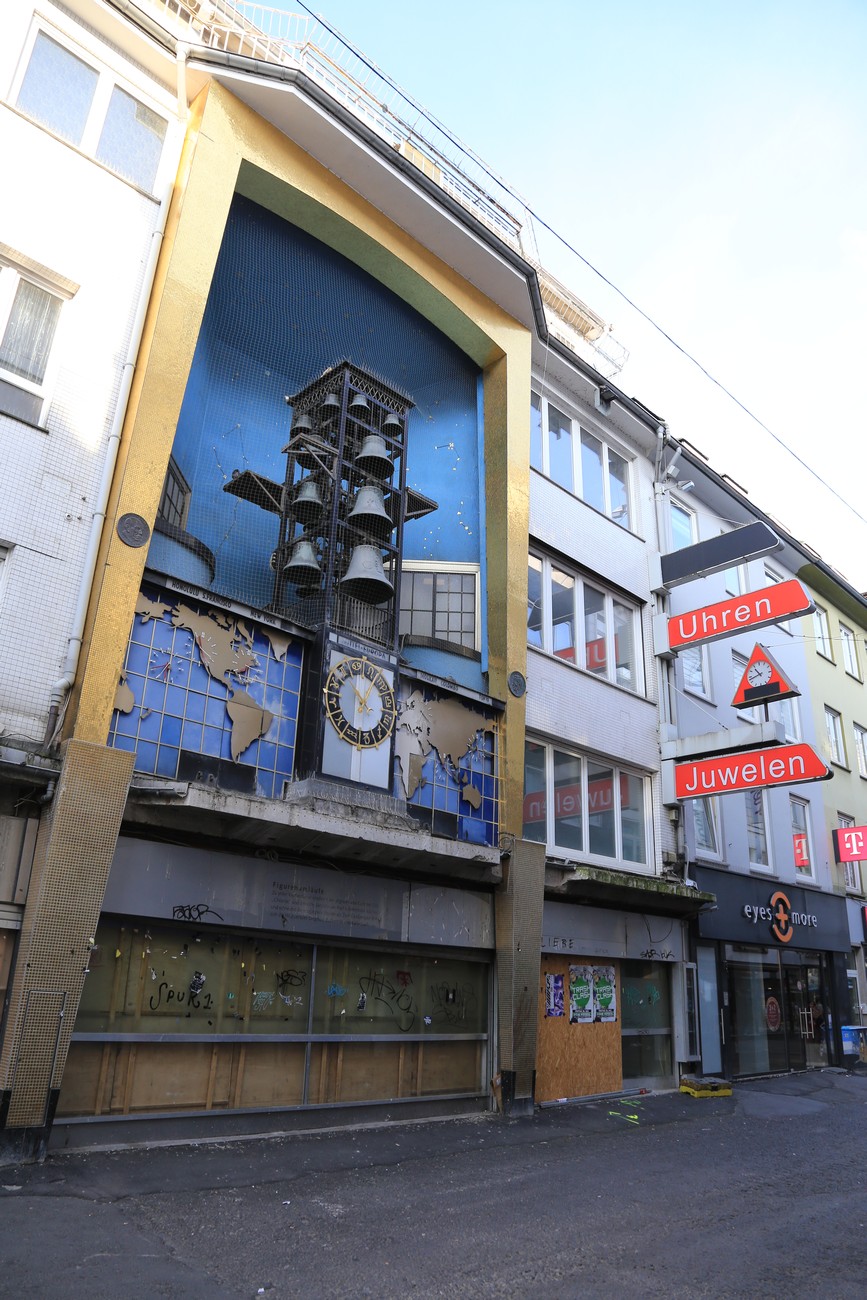 Vartin välein luukuista marssii hahmoja ja kelloja soittavat paikalliset kuuluisuudet. Eipä näy.