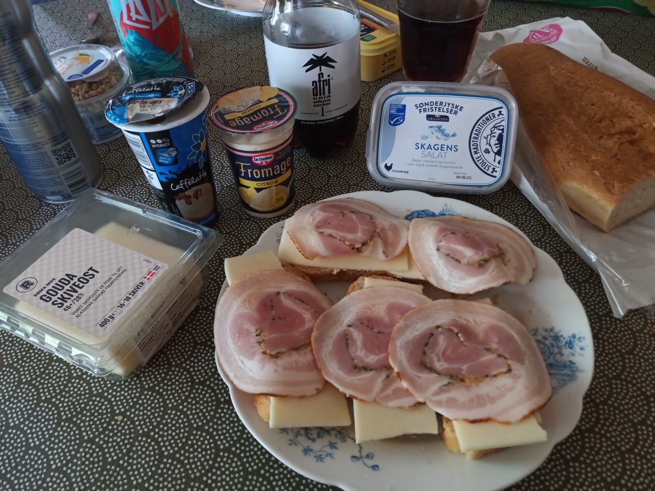 Grännassa ajo kaupungin läpi riitti sytyttämään varoitusvalot, marketin pihalla tuuletin huusi taas kuin puhallettava. Hankimme leikettä, paistopistepullaa, pussin hönökakaa, pari folköliä ja sitä mitä tulimme hakemaan; ruotsalaisia eineslihapullia ja perunasallaattia. Ne ovat periaatteessa täysin samanlaisia kuin meikäläisetkin - paitsi että 100 kertaa parempia. Etenkin perunasalaatti on mahtavan raikasta, ei tunkkaisen rasvaista - vaikka rasvaa siinä kyllä riittää.