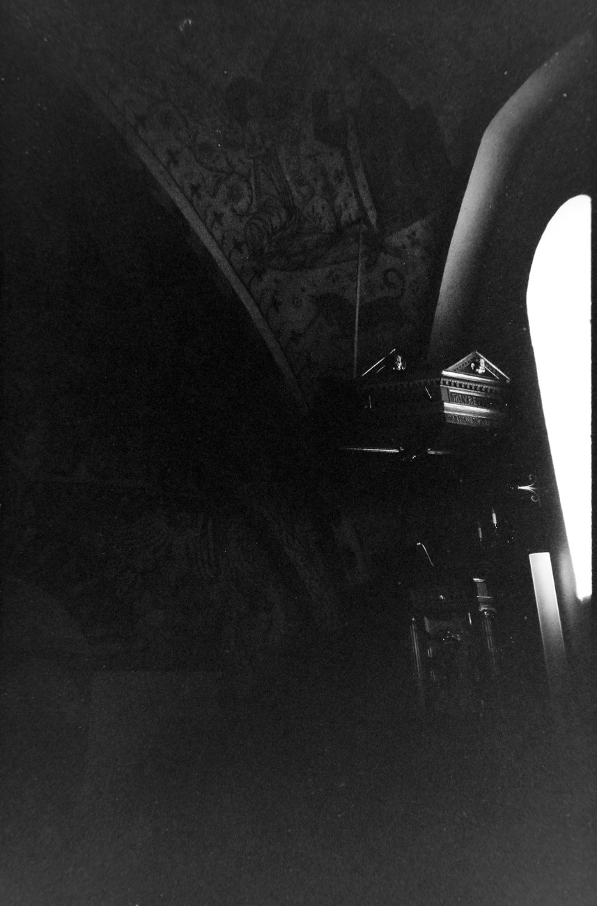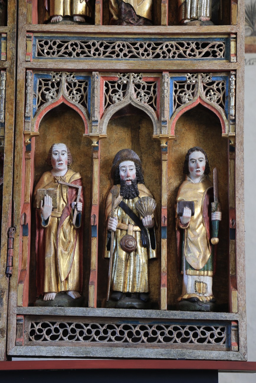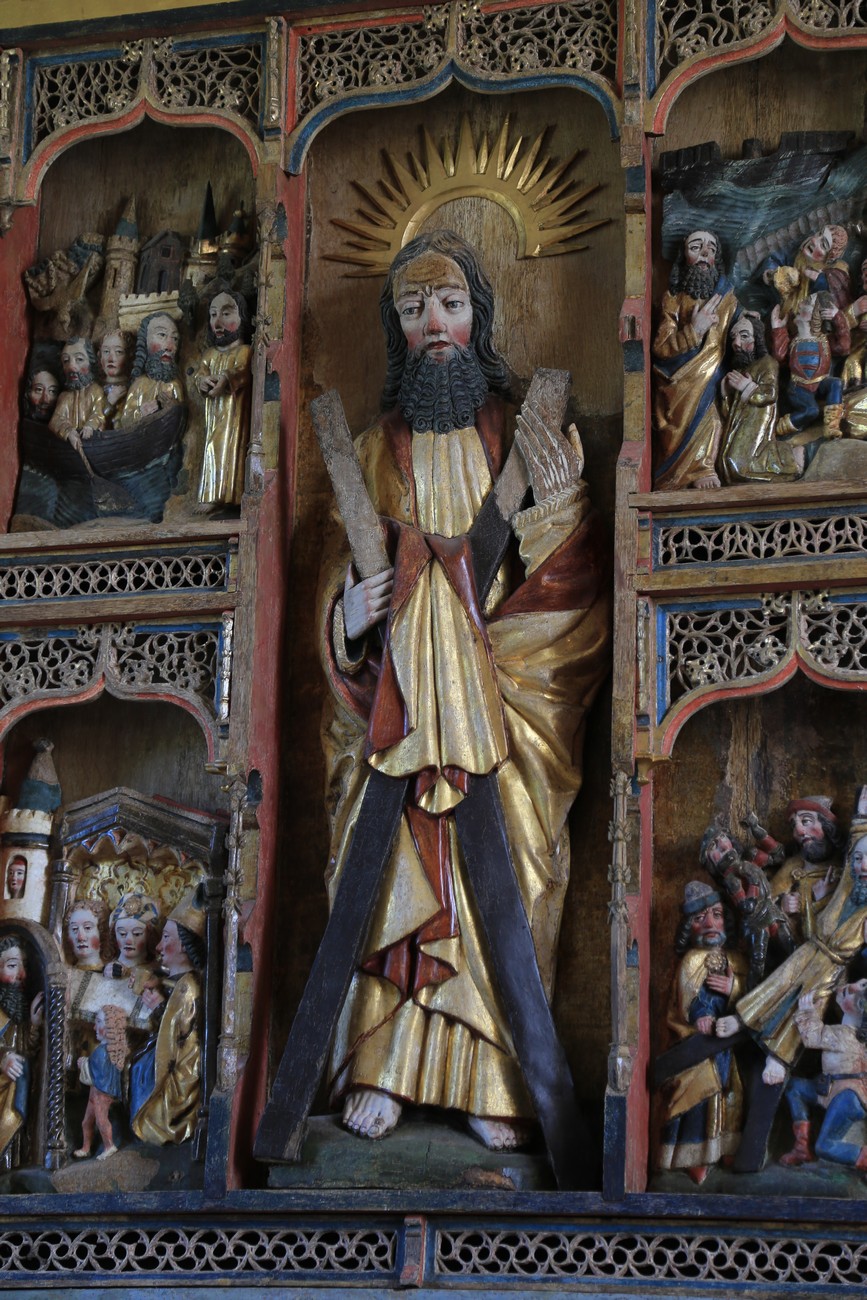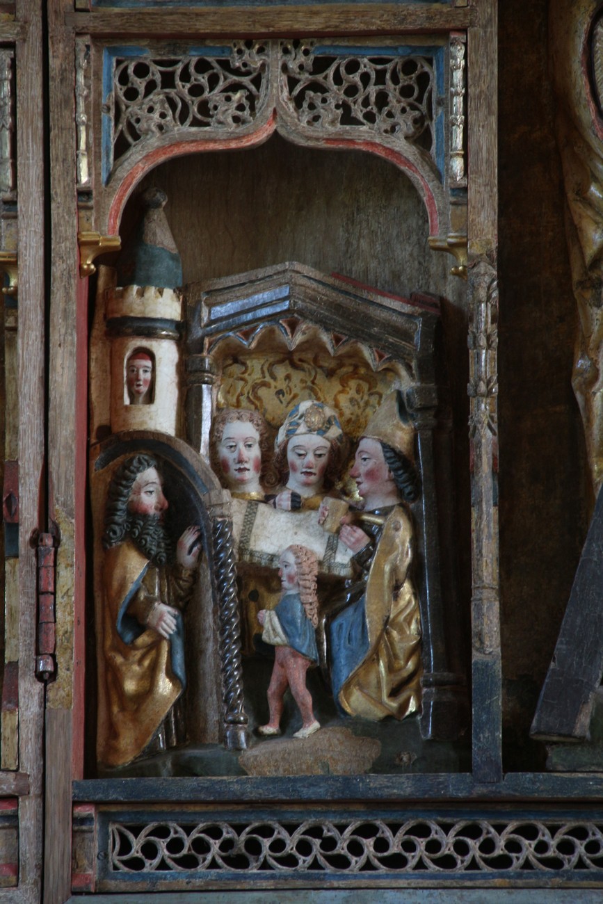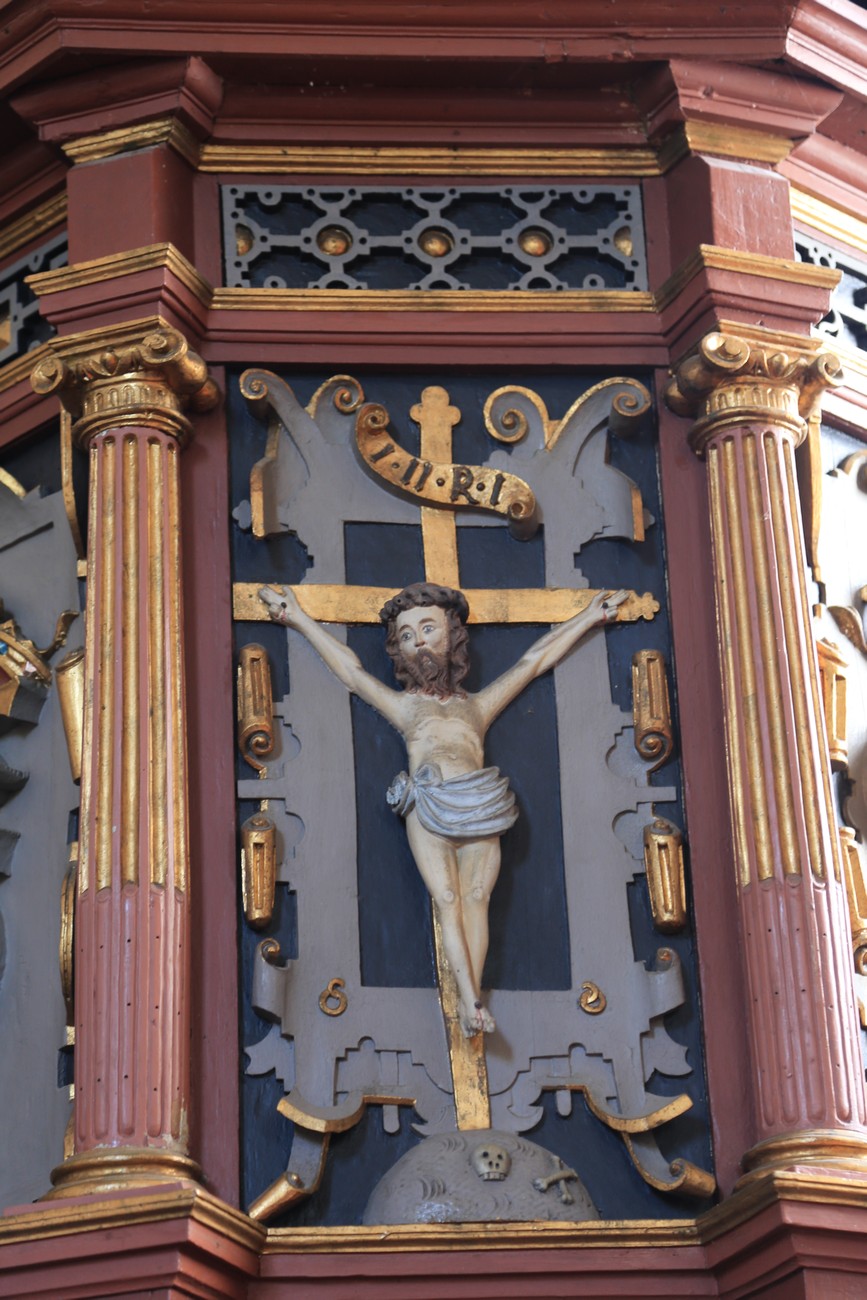 Auto käynnistyi iloisesti, tyhjäkäynti hieman röpötti mutta valot eivät palaneet ja matkaan päästiin. Kävimme heti alkajaisiksi huvittumassa ihan liikaa Keldbyn kirkon keskiaikaisista seinämaalauksista ja puuveistoksista. Niitä on kirjaimellisesti seinät ja katto täynnä, toinen toistaan mahtavampaa naivismia. Juu, olen minä hevosen nähnyt, eikös se piirretä vähän kuin iso koira? Ja crowdsurffaava jesse, se me laitetaan alttaritauluun. Meinasi naurattaa ääneen, mutta muiden läsnäolijoiden vuoksi hillitsimme itsemme - etenkin halusimme suojella yli-ikäisen sivarin näköistä, ilmeisesti suntiota, joka tomutti virsikijoja ahkerasti.