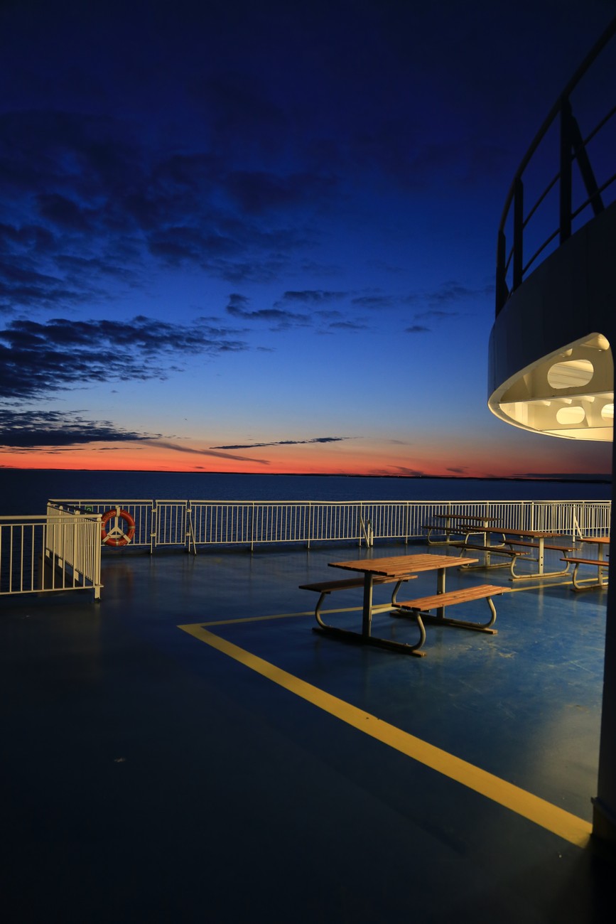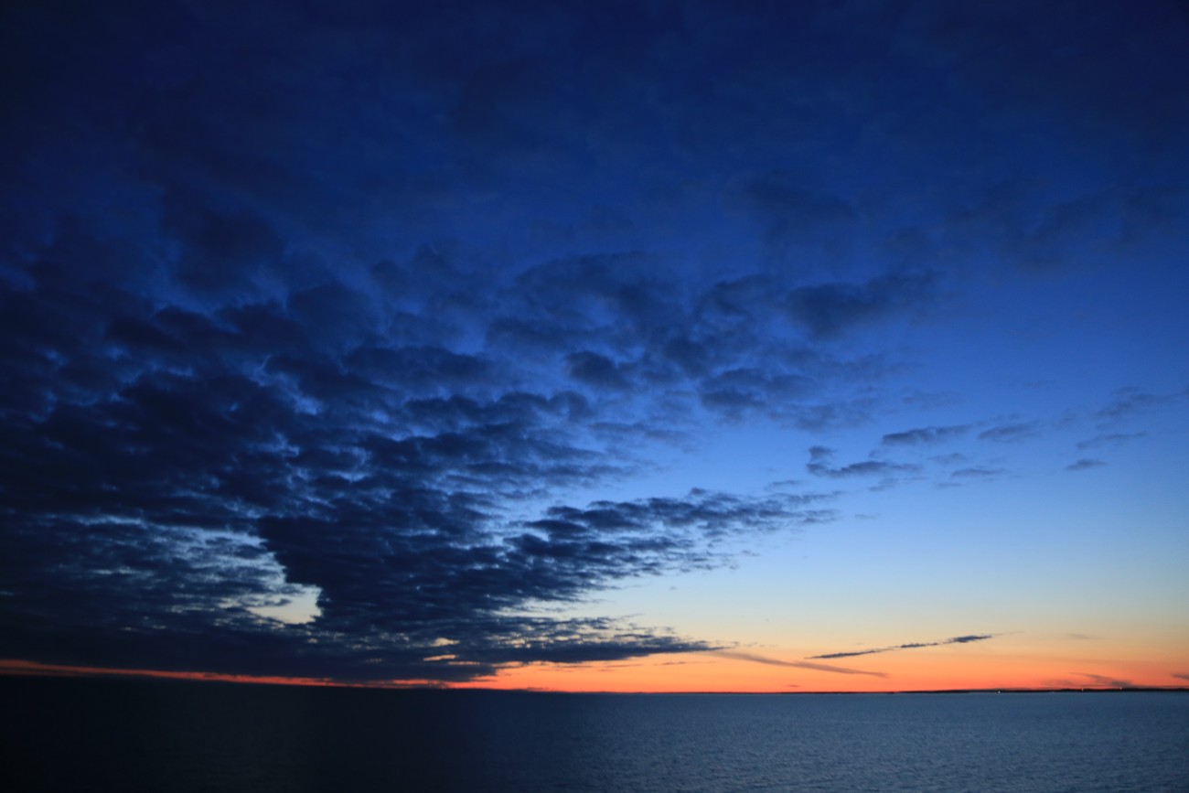 Auringonlasku on tuolla - meidän pitäisi olla jo merellä, jos jotain tahtoisi nähdä