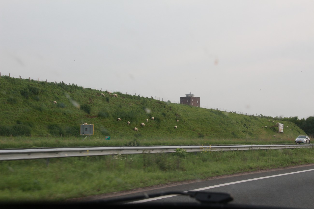 Toinen pitkä ajopäivä taisteltu läpi. Joko yöunet olivat riittämättömät, tai sitten minussa on jotain vikaa - joka tapauksessa suoran tien tuijottaminen kävi ylivoimaisen väsyttäväksi noin tunnin jälkeen. Oli kertakaikkiaan pakko pysähtyä kävelemään auton ympäri, ostamaan kahvia, venyttelemään, kiipämään meluvallin jyrkkää seinämää, mitä tahansa. Yritin syömistä, energiajuomaa, vissyä, tavallista vettä ja ikkunoiden avaamista. Kaikista oli apua hetkeksi, vaan ei lopullista helpotusta. Lopulta keksin aika hyvän keinon, mutta palataan siihen myöhemmin.