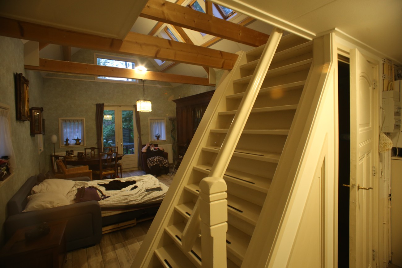 Utrecht on modernin näköinen yliopistokaupunki, pakolliset kanavat ja vanhat puolet löytyvät toki. Oikein pätevän oloinen näin ohiajettuna; katsomme huomenna tarkemmin, tässä ollaan kaksi yötä. Majoitus on puutarhavajassa, joka tosin on kaksikerroksinen ja 50-neliöinen, oma puutarha kuuluu pakettiin. Isäntä auttaa tavaroiden kantamisessa ja tarjoaa kaljan, sitten vielä toisen. Kertoo juttuja kaupungista ja elämästä yleensä, vaikuttaa oikein sivistyneeltä ja mukavalta. Sanoo käyvänsä aamu-uinnilla viereisessä kanavassa ja tarjoutuu tekemään kaupungin parasta munakokkelia. Otamme haasteen vastaan.