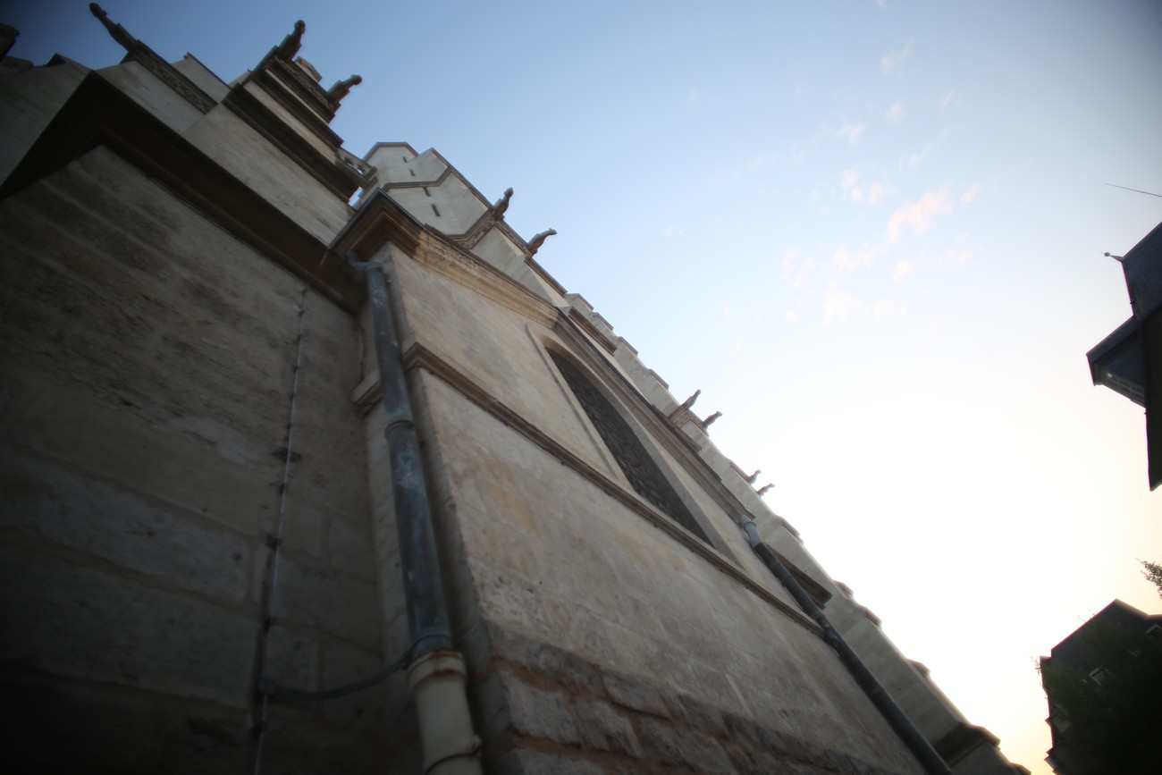 Kuten Pariisin Notre-Damesta, tästäkin puuttuu tornien huipuilta korkeat ja kapeat harjakatot