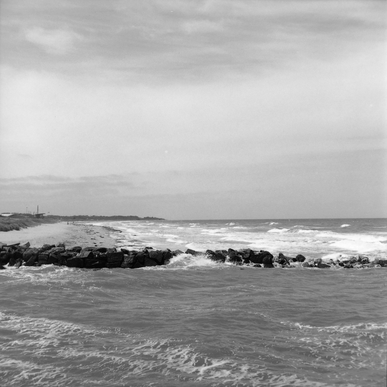 Kämpillä pakkasin vaimon autoon, ajoimme katsomaan bunkkereita sun muita betoneja Longues-sur-Meriin ja Gold Beachille. Jaksoin odottaa vuoroani ja sopivien kuvakulmien vapautumista tempoilevien ja jumittavien aikuisten kanssa ihan hyvinkin, mutta kun paikalle kaarsi kaksi bussillista teinejä, tiesin että aika oli täysi. Bunkkerit olivat kuitenkin hienoja, graafisen kaarevia ja sopivan kulmikkaita mustavalkokuviin. Toivottavasti valotus osui, sen näkee sitten kotona.
