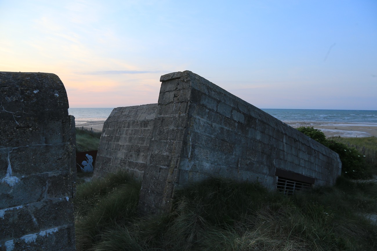 Kas, bunkkeri vinossa ja hyökkäilevät soltut. Mutta onko se muurattu harkoista? Epätavallista.