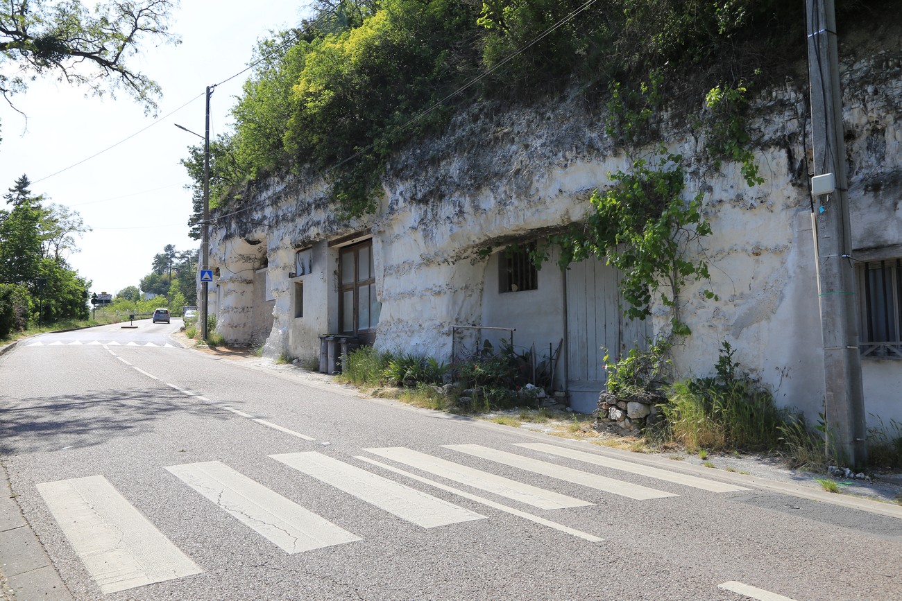 Linnoitus katsoo ylhäältä ja luolissa on ulko-ovet