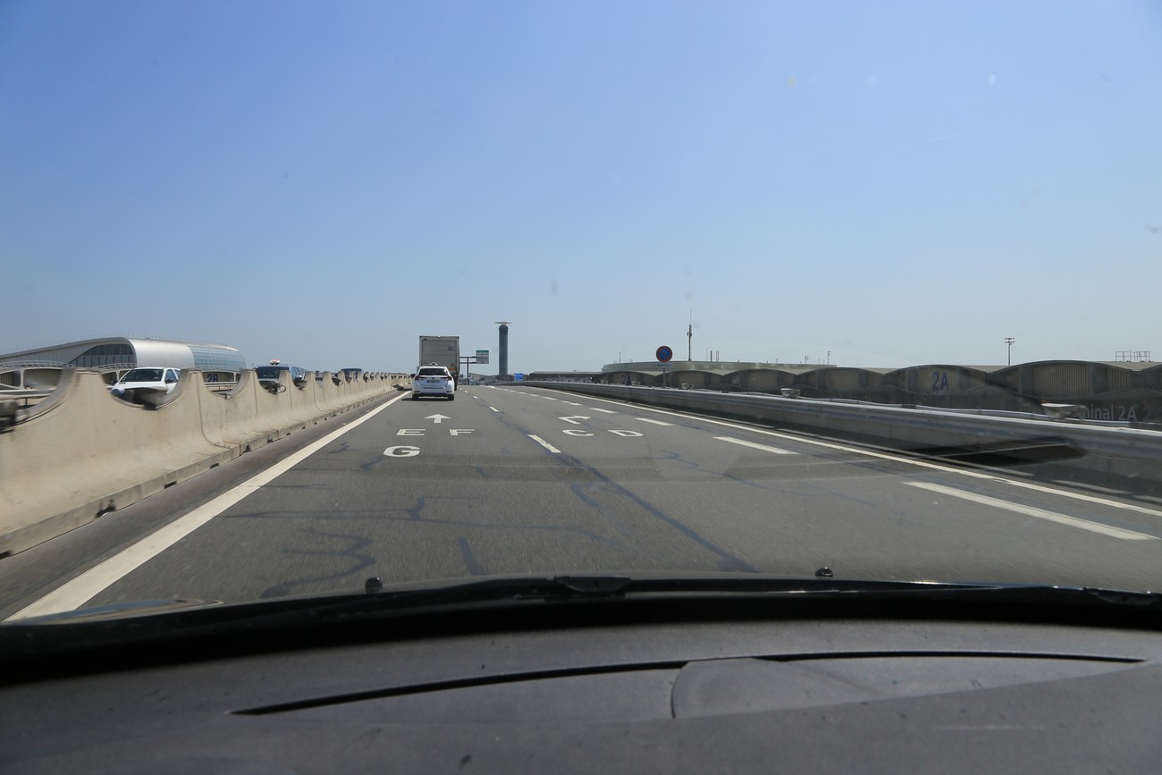 Tähän asti kummalisin majoitus jäi taa, kun kännyimme pois palaneen myllyn puistokujalta. Vahtikoiraa piti sitä ennen hieman käskyttää, se kun makasi taljana keskellä tietä. Puikkelehdimme pienten kylien labyrintin läpi, kohti maksullista moottoritietä ja Champagnen maakuntaa. Tie oli täälläpäin halvempi, koko kolmen tunnin matka maksoi noin kympin. Navigaatio järjesti Pariisin kehätiellä kivan pikku jäynän, ajatti nimittäin Charles-de-Gaullen lentokentän läpi - näin jo lähtöaulan ovet ja koneiden pyrstöjen rivistön, ennen kuin se löysi jonkun kieron reitin ulos. Nopeutta ei tosin tarvinnut pudottaa alle kahdeksankympin, eli kai tämä oli ihan normaali reitti.