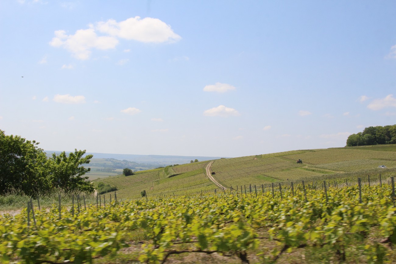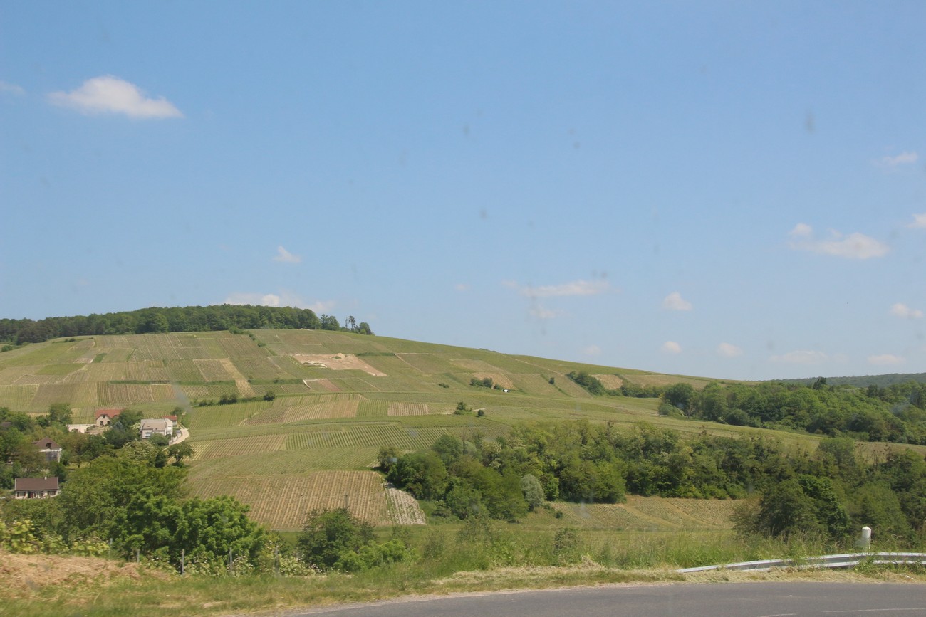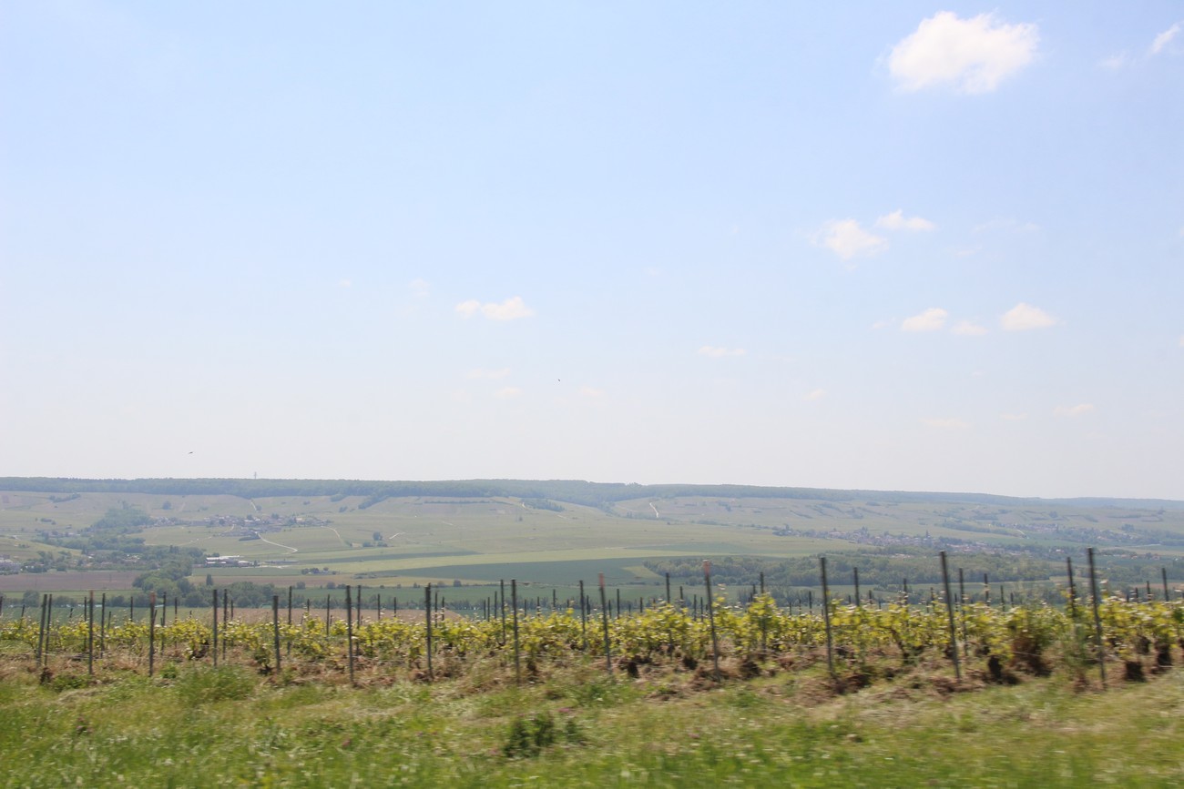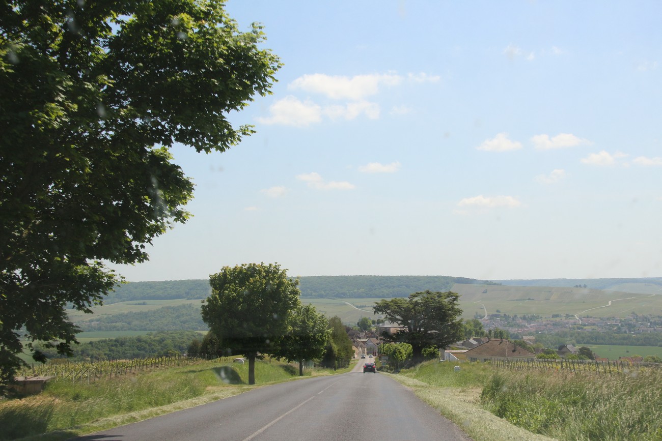 Pieni tie jatkui samanlaisena kuin ennenkin, heinä tuoksui, puut kukkivat ja pelot vaihtuivat välillä metsiksi. Olin juuri toteamassa, tai ehkä se oli Krista, että ei tämä kovin shamppanjaiselta näytä, kun tulimme puiden katveesta Marne-joen laakson yläreunaan. Joki kiemurteli kaukana alhaalla ja hiekanväriset kylät täplittivät kumpuilevaa maastoa, jonka jokaikinen neliösentti kasvoi viiniköynnöstä. Niin se maisema muuttuu.