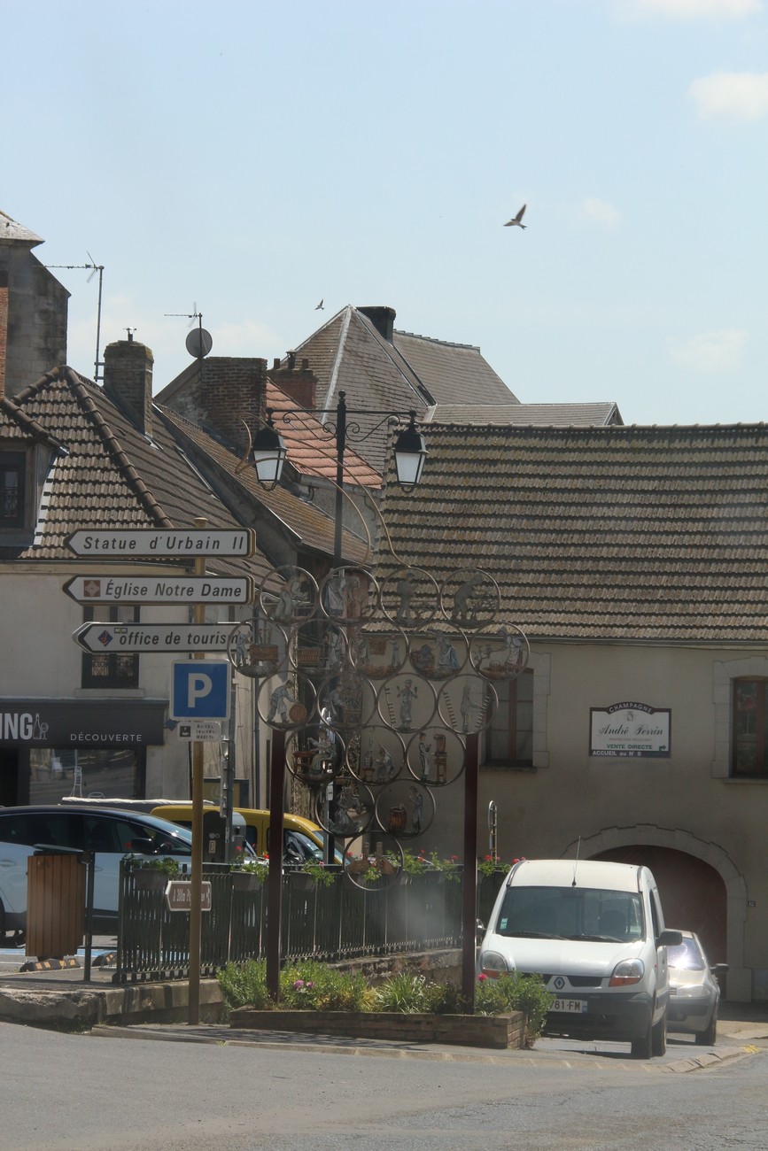 Pian oltiin taas maaseudulla - Pariisi nimitäin loppuu kuin seinään. Ylä- ja alamäkiä riitti, samoin laajoja näkymiä ylängöltä viereisiin pikkukaupunkeihin. Moottoritieltä poistuttaessa meitä tervehti kyltti, joka totesi, että huomaatehan että ette ole enää moottoritiellä, ajakaa siis hiljempaa. Erikoista, mutta pitää muistaa että noin joka toisessa nopeusrajoituksessa on lisäkyltti "rappel" eli "muistutus" - ja että aika monien kärkikolmioiden alla lukee joko "väistäkää", "antakaa tietä" tai "teillä ei ole etuajo-oikeutta." Seuraavaksi tulee varmaan stop-merkkiin lisäkilpi "pysähtykää."