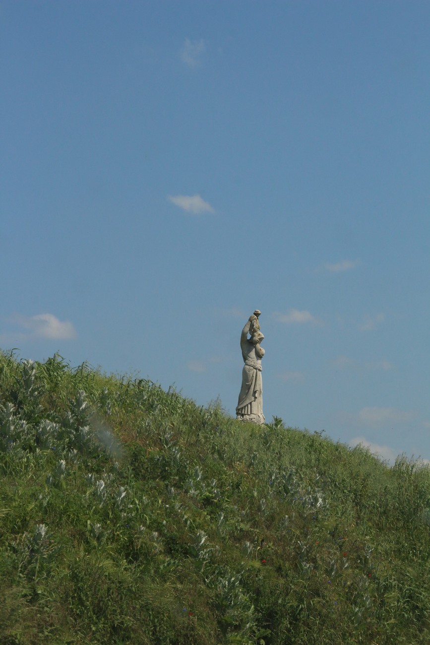 Että edes jotain näkisimme, ajoimme kohti Ossuary du Douaumontia eli luutaloa - ja siinä, alla puolen kilometrin päässä, oli tuhottu kylä. Opastaulut ja kaikki. Katujen paikalla kulkivat pienet polut, talon kohdalla oli kuoppa ja kiveen asennettu kyltti joka kertoi mitä missäkin oli ollut - leipomo, suutari, tinuri, maatalo, maatalo, maatalo, kirkko. Ei kiveä kiven päällä, vain alkuillan lämmin aurinko ja hiljainen tuuli. Aika pysäyttävä paikka - ja samanlaisia on lähistöllä ainakin kaksi muuta.