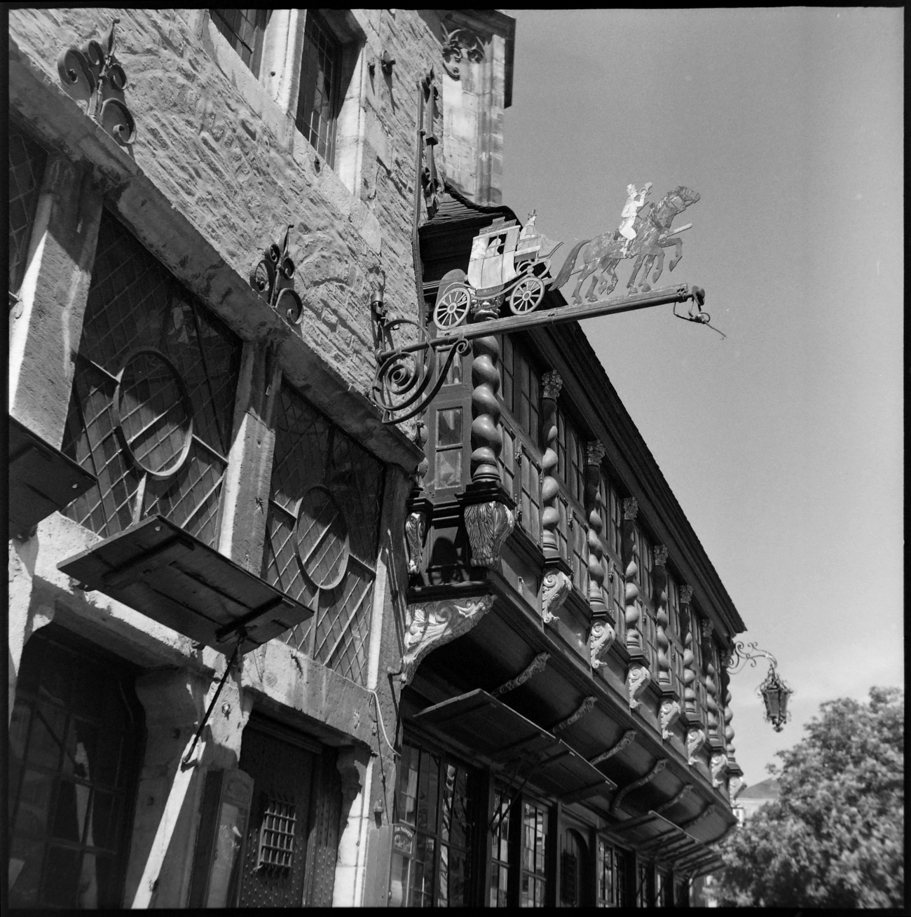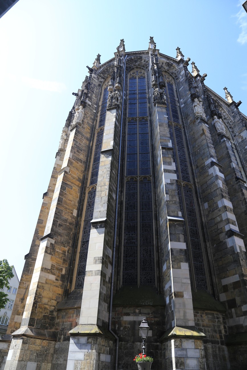 Kävelin torilta kirkolle, se oli oikein kaiserstuhl eli keisarien virkaanvihkimyspaikka. Matka ei ollut pitkä, mutta ehdin nähdä noitien lettubaarin, sätkynukkesuihkulähteen ja aika paljon puluja. Katedraali se vasta erikoinen olikin. Ensin kirkontorni, sitten noin puolikas kirkko, sitten kapea kuja - ja sitten katedraali, kahdella eri tornilla ja niitä yhdistävällä sillalla. Ihan kuin joku olisi päättänyt, että tähän se nyt tulee ja pudottanut koko komeuden nosturista että poks. Löytyi paljon jänniä kuvakulmia ja odotin jo sisälle pääsyä - mutta silloin alkoi senvaltakunnan kellonsoitto ja moikina, että pään sisälläkin kaikui ja humisi. Samalla käännyin kulman ympäri, haistoin suitsukkeen makean savun ja näin tuhatpäisen väkijoukon. Niin tosiaan, se superhelluntai. En taidakaan mennä.