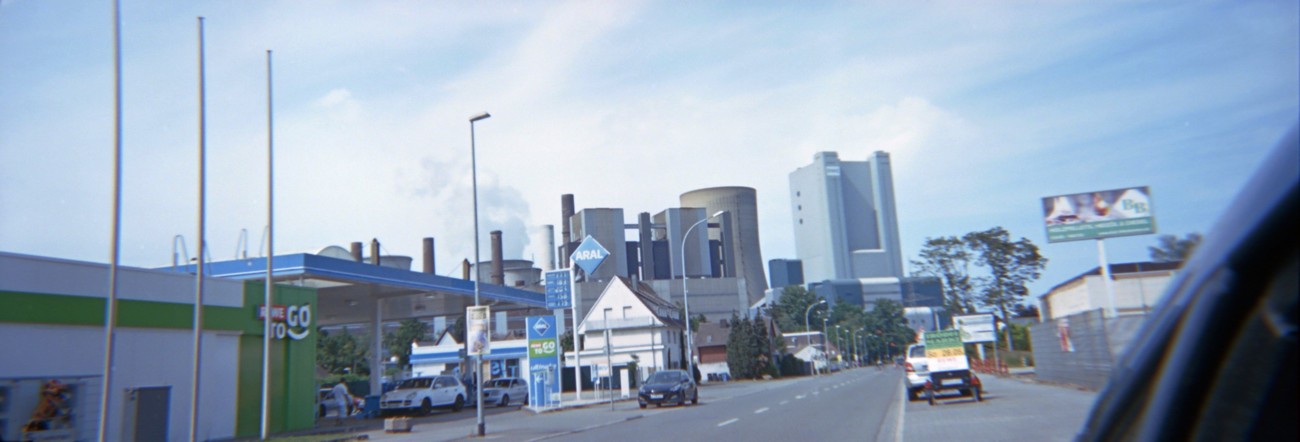 Horisontissa höyryää voimala, kuljettimet vievät hiilen suoraan sinne