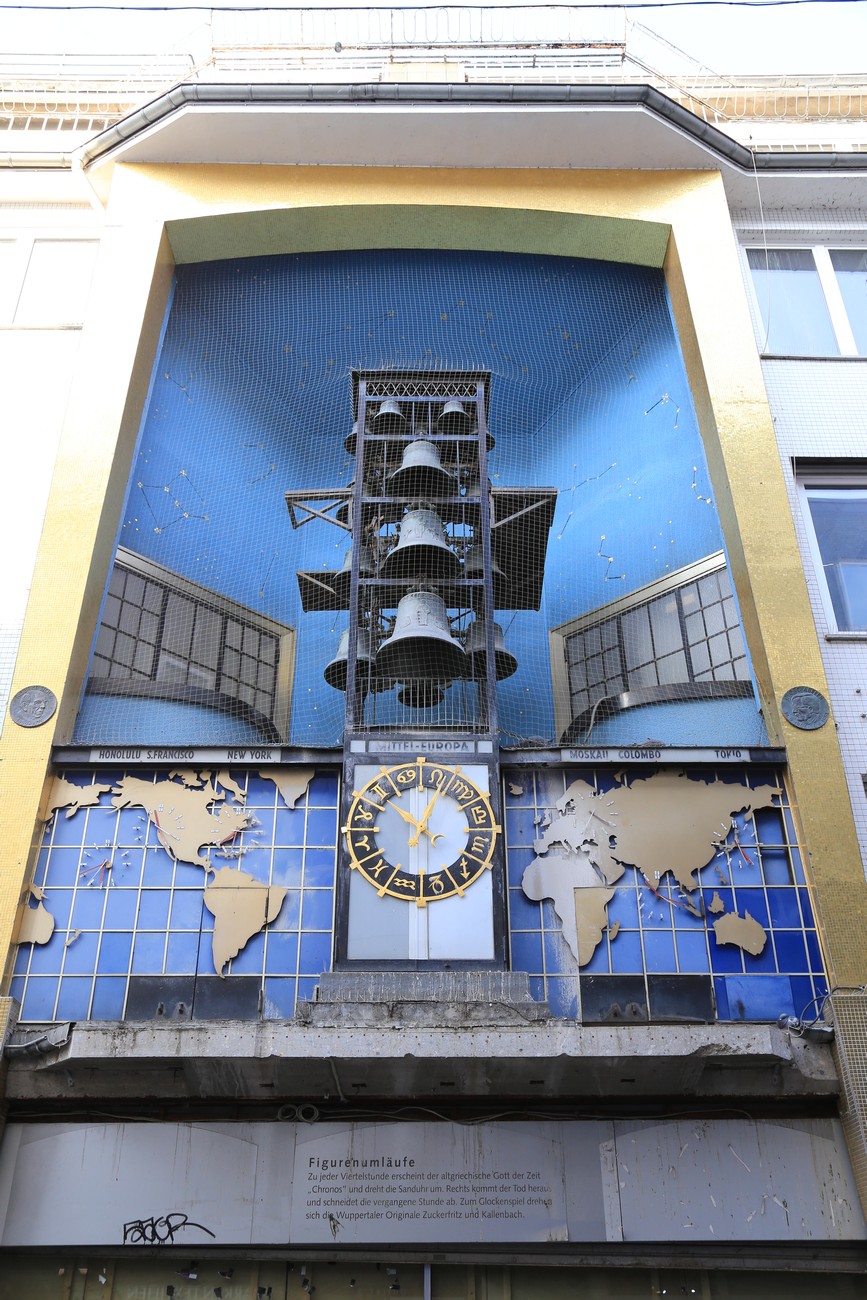 Vartin välein luukuista marssii hahmoja ja kelloja soittavat paikalliset kuuluisuudet. Eipä näy.