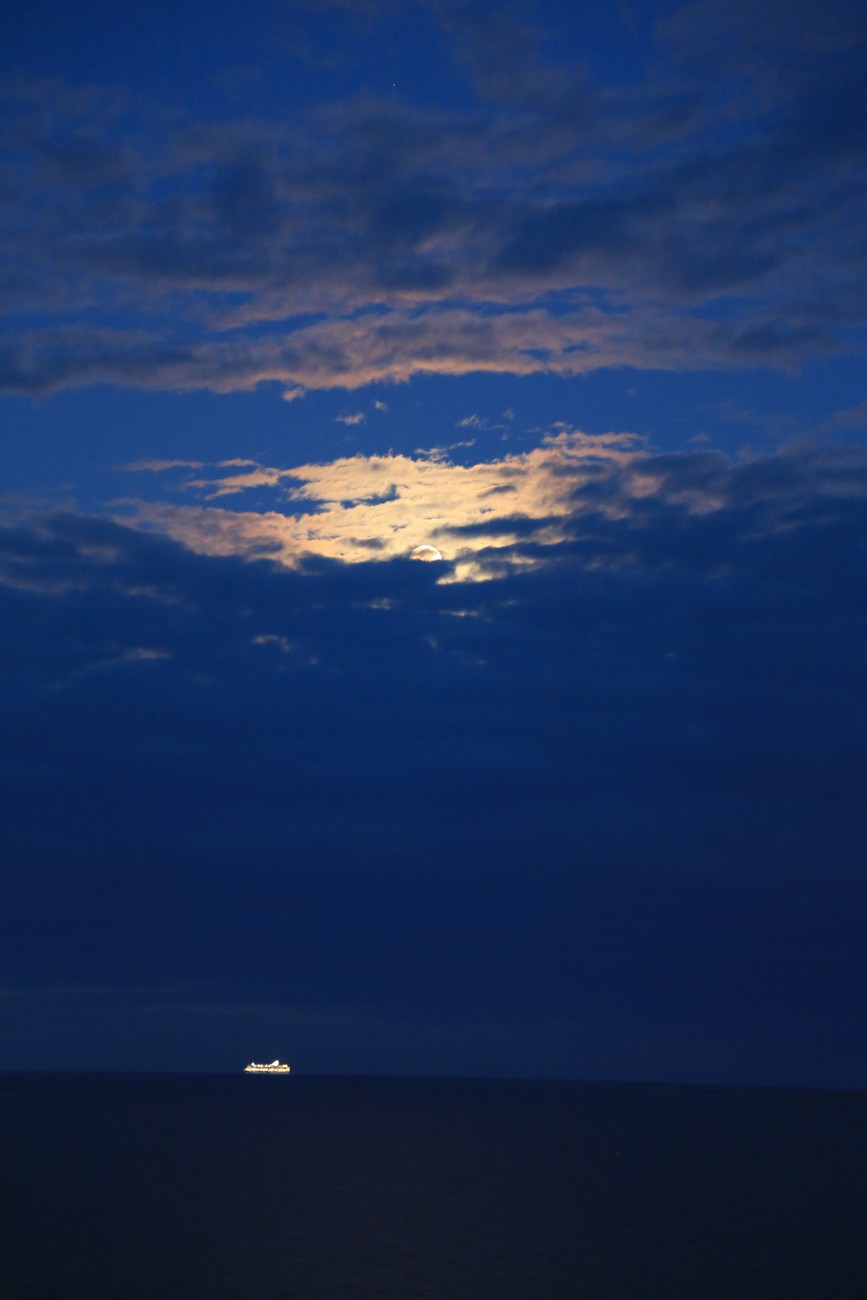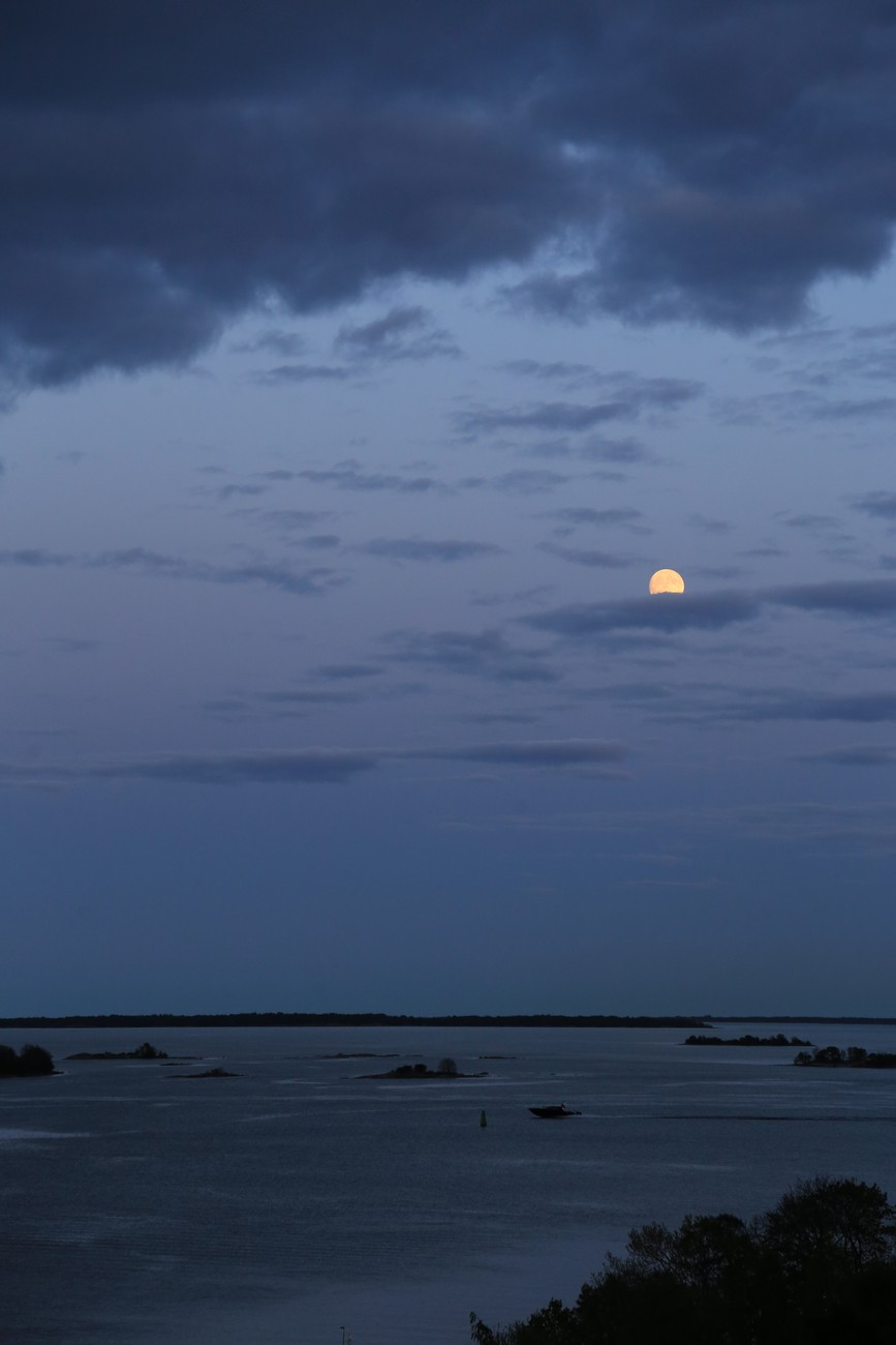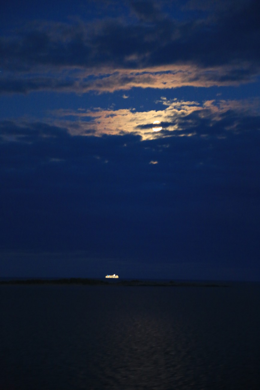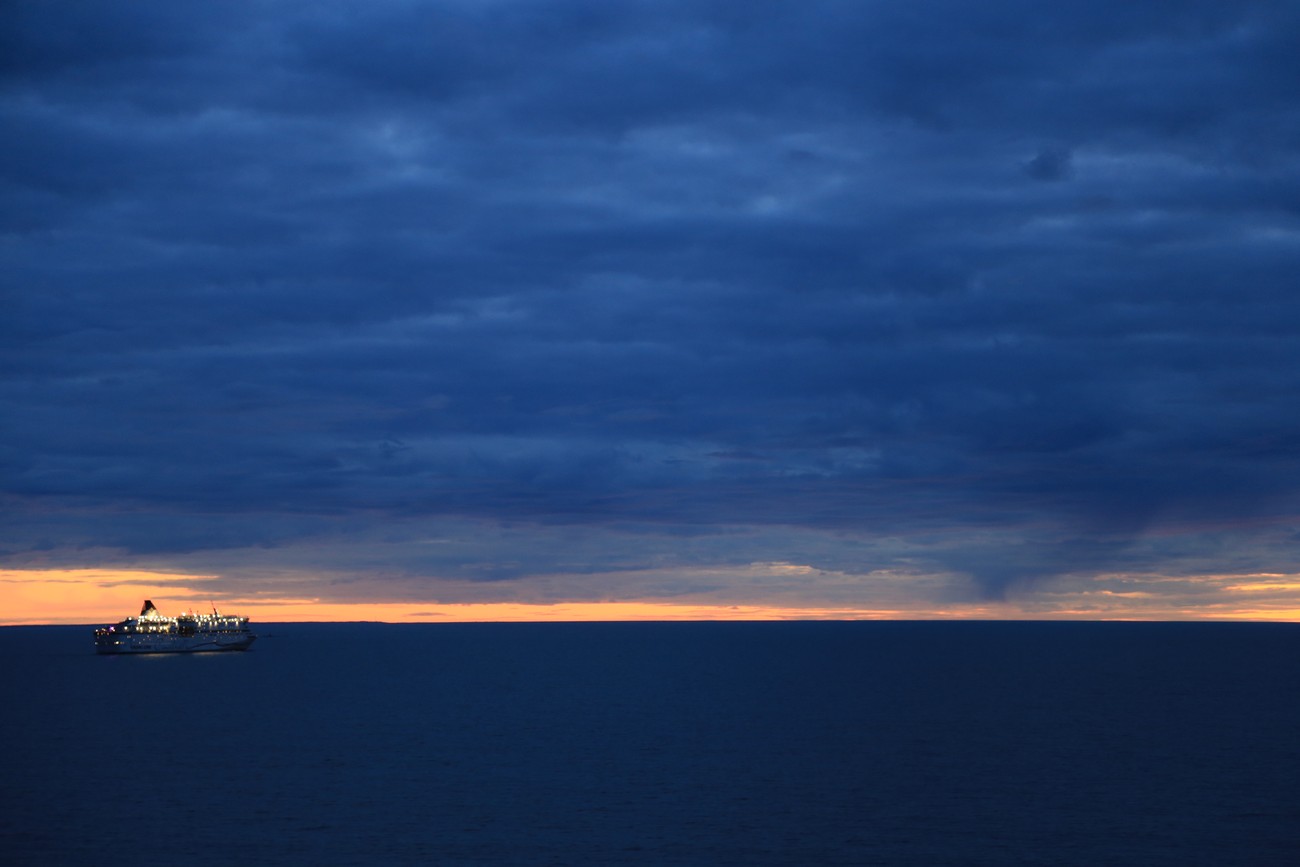 Auringonlasku on tuolla - meidän pitäisi olla jo merellä, jos jotain tahtoisi nähdä