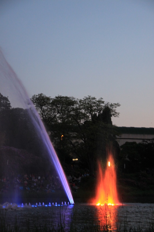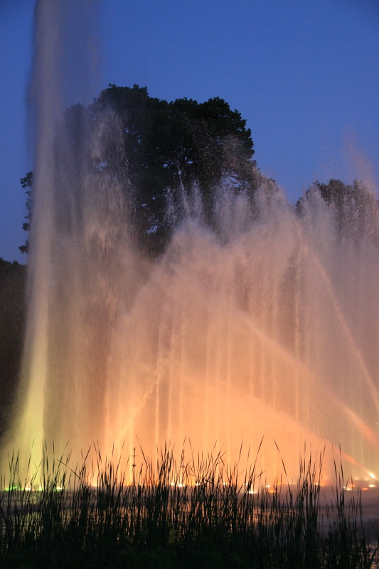 Välikuolema hotellilla, sitten katsomaan eri isoa kukkaispuistoa (tylsä, liian organisoitu) ja etenkin musiikin tahtiin jumppaavaa ja vilkkuvaa suihkulähdettä (järveä tai lampea) jota kaksi muusikkoa ohjaa livenä. Upea, kerrassaan upea. Lahden epätahtiset vesiurut jäivät kauas taa.