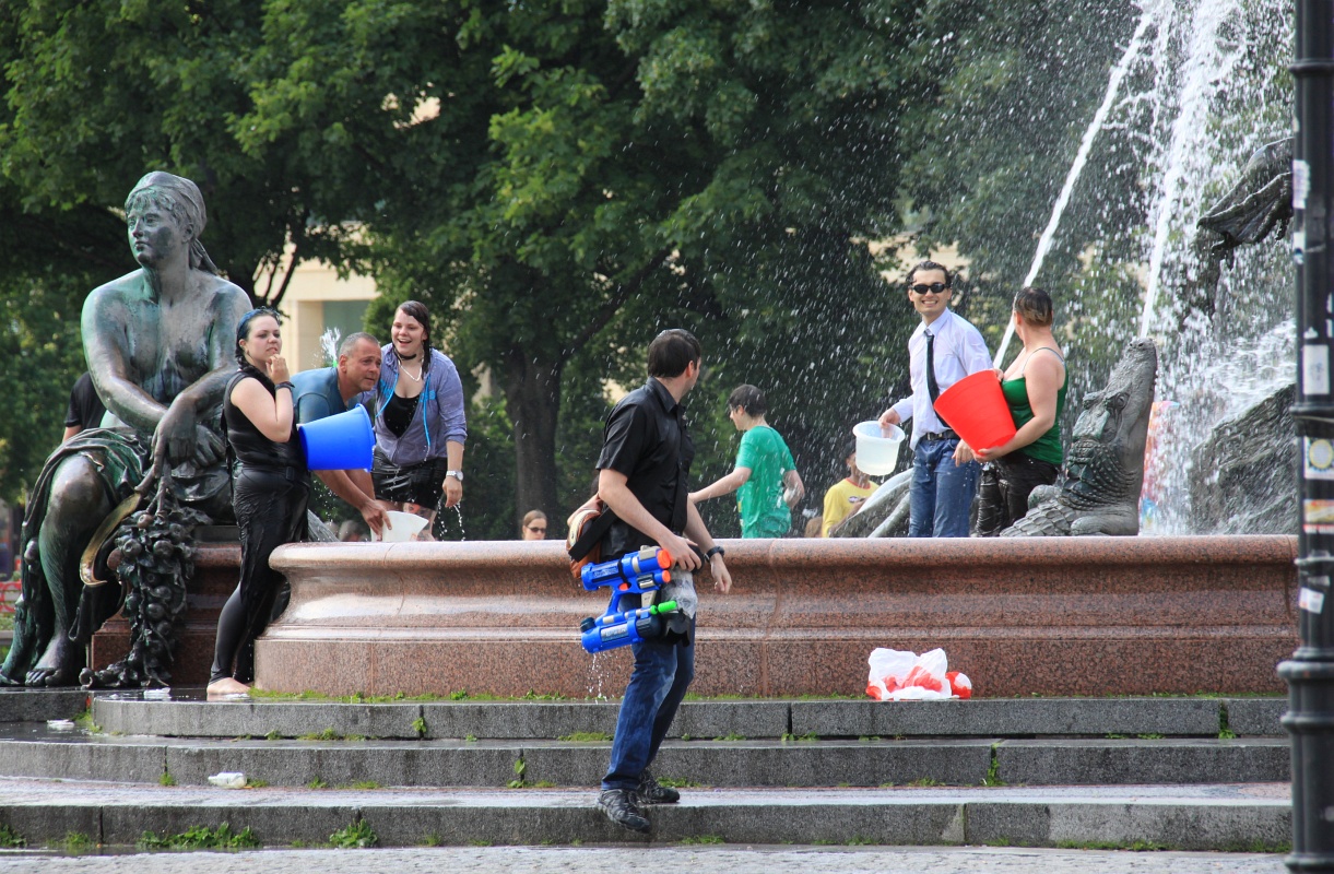 Mitä Berliiniläiset tekevät läkähdyttävällä helteellä? Kylpevät tietenkin suihkulähteissä. Niihin kai vaihdetaan vesi hieman useammin kuin täällä meillä - tai sitten ei. Hauskaa näyttää olevan, miten vain.