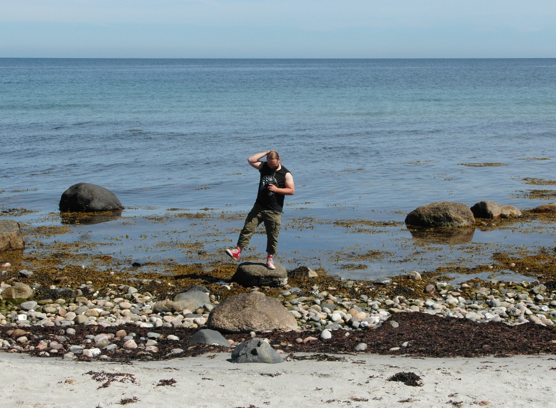 Odden puolella (siirryttiin siis Jyllannista Sjællandiin) Tanska yllätti taas: pieniä rantoja, maatiloja, kumpuilevia peltoja ja muutaman talon kyliä. Laitettiin Setä opastamaan moottoriteiden ulkopuolisia reittejä, että saatiin nauttia maisemasta. Pari kertaa piti pysähtyä ottamaan kuvia ja useita kertoja olisi voinut, jos olisi keksinyt mihin laittaa auto. Siinä ajellessa sai kivan rekkisrusketuksen - oikea käsi palanut olkapäähän asti, vasen ei.