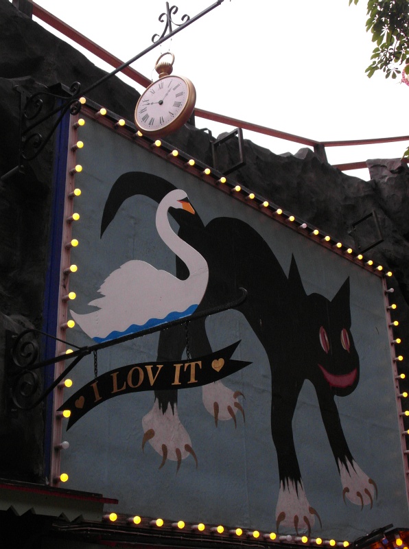 Värikäs rakennus taustalla ei kuulu Tivoliin. On se jännä.