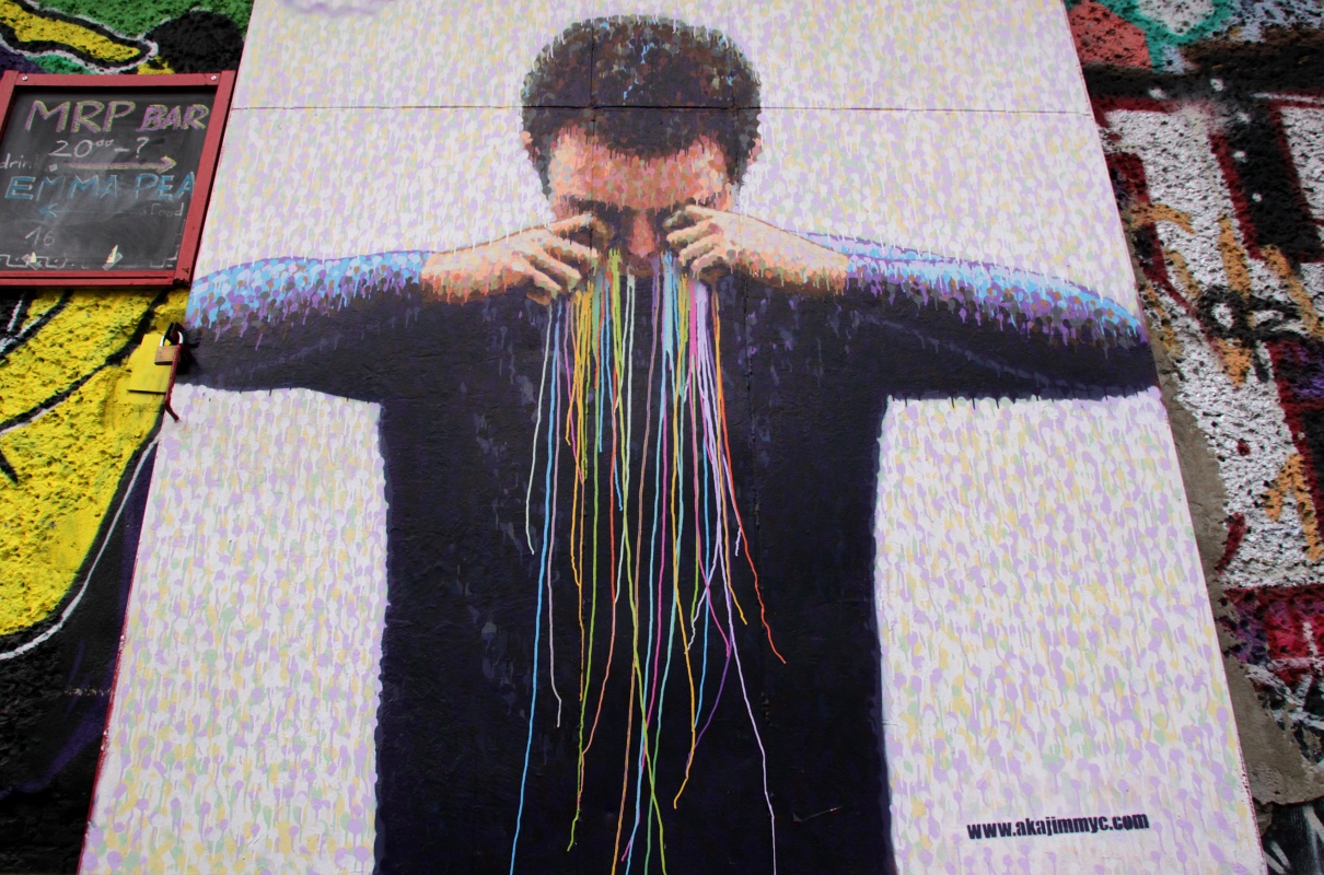 Turisti pizzalla Il Ritrovossa. Hipit suosittelevat - seinätkin täynnä punkbändien nimmareita. Hyvä ruoka ja tyly palvelu, kuten kuuluukin.