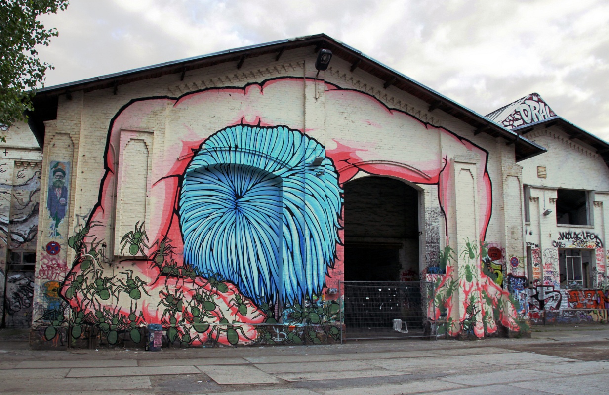 Tämä paikka on siis hylätty junakorjaamo, jossa on nykyään ravintoloita, baareja, skeittihalli, jne.