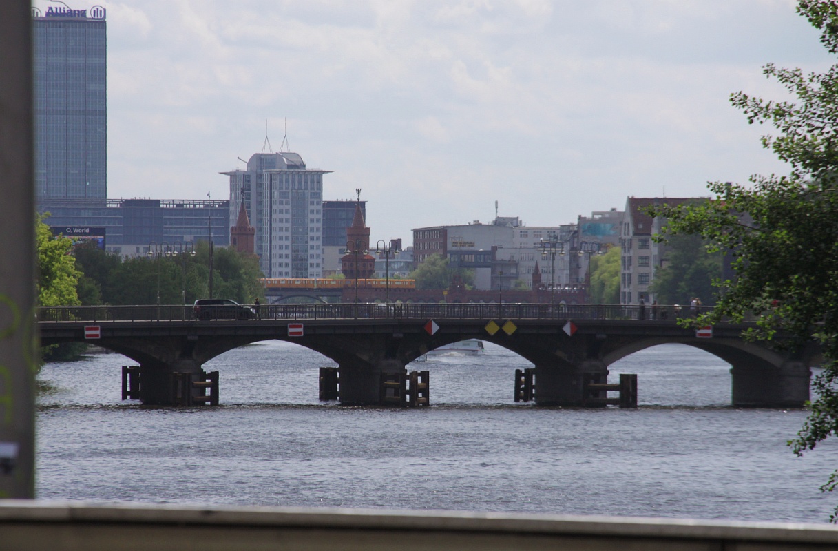 Näkymä sillalta. Putkijohto ja Landwehrkanal.