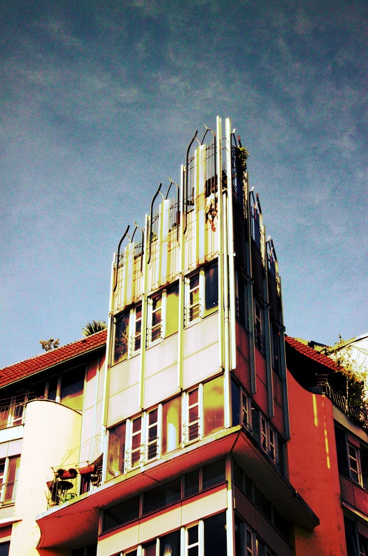 Katsoin jo kaukaa, että onpa oudon kierot rakennustelineet - mutta sehän olikin vain arkkitehtuuri. Väri on ehkä hieman outo.