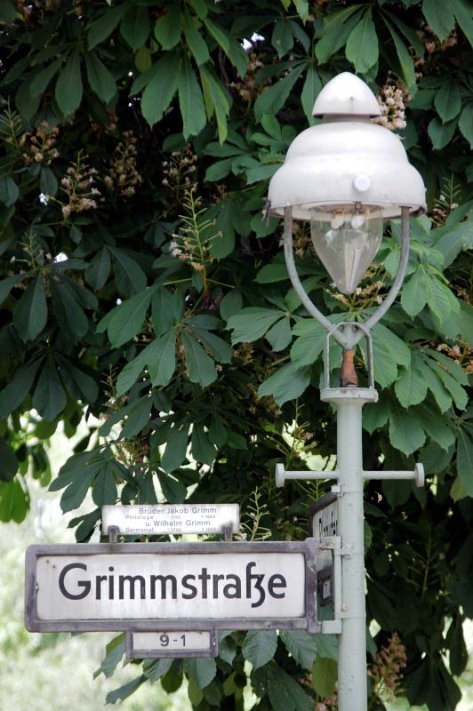 Katukyltit ja niiden selitykset. Grimminkatu, sieltä tulee Grimmin satu.